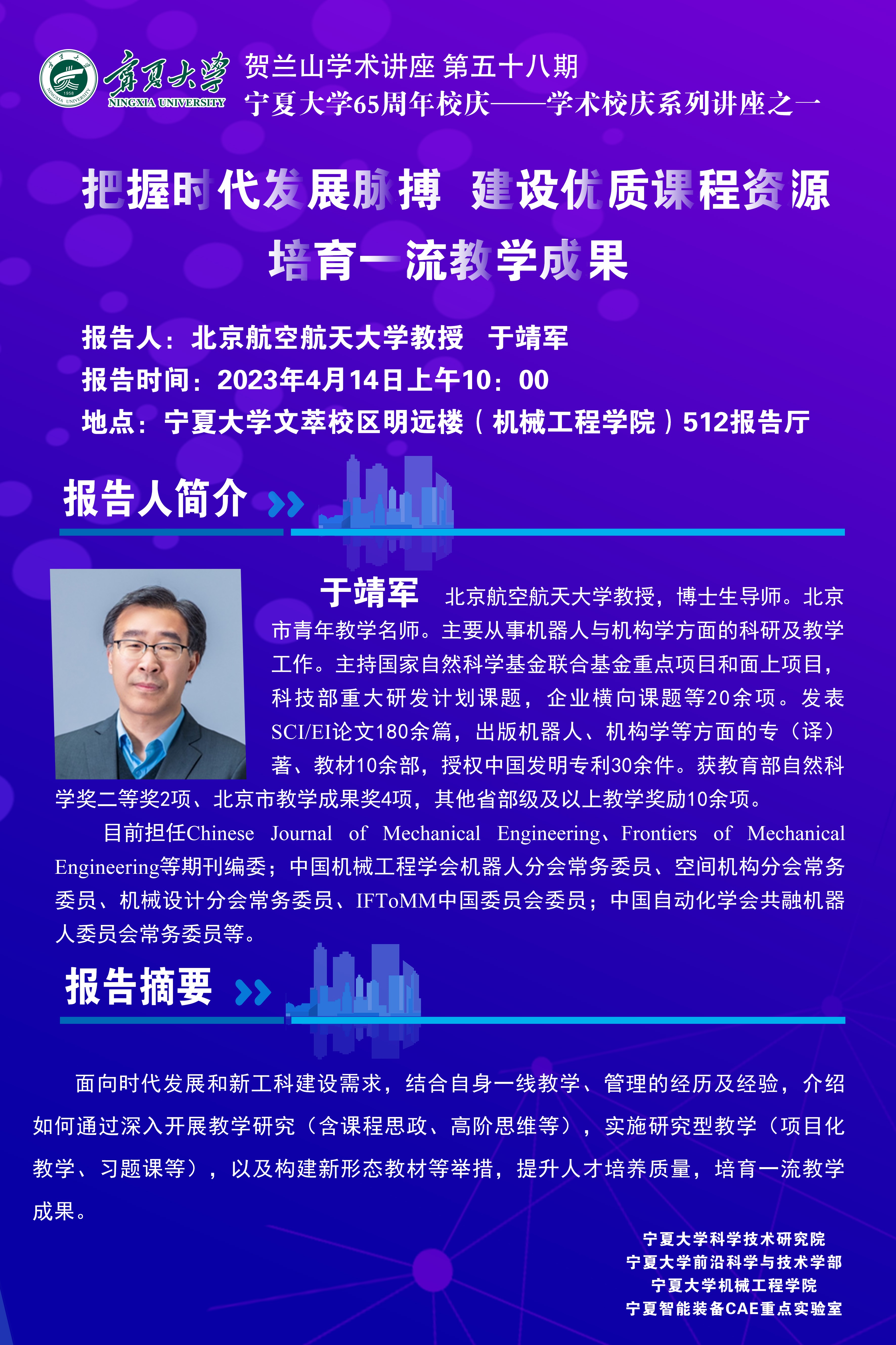 主讲人:北京航空航天大学教授 于靖军