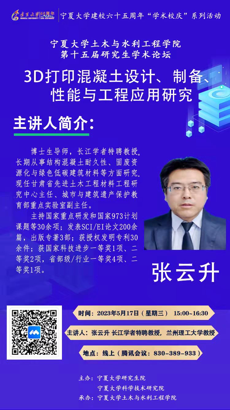张云升,兰州理工大学,教授、博导,长江学者特聘教授。长期从事结构混凝土耐久性、固废资源化与绿色低碳建筑材料等方面的研究。现任甘肃省先进土木工程材料工程研究中心主任、城市与建筑遗产保护教育部重点实验室副主任,江苏省硅酸盐学会副理事长以及10多个国家级专委会理事。先后主持国家重点研发计划课题、国家973计划课题等科研项目30余项;发表SCI/EI论文200余篇,出版专著3部;获授权发明专利30余件;获国家科技进步一等奖1项,二等奖2项,省部级/行业一等奖4项,二等奖1项。成果应用于建筑、桥梁、道路、建筑节能、古建修复等多项重要工程。