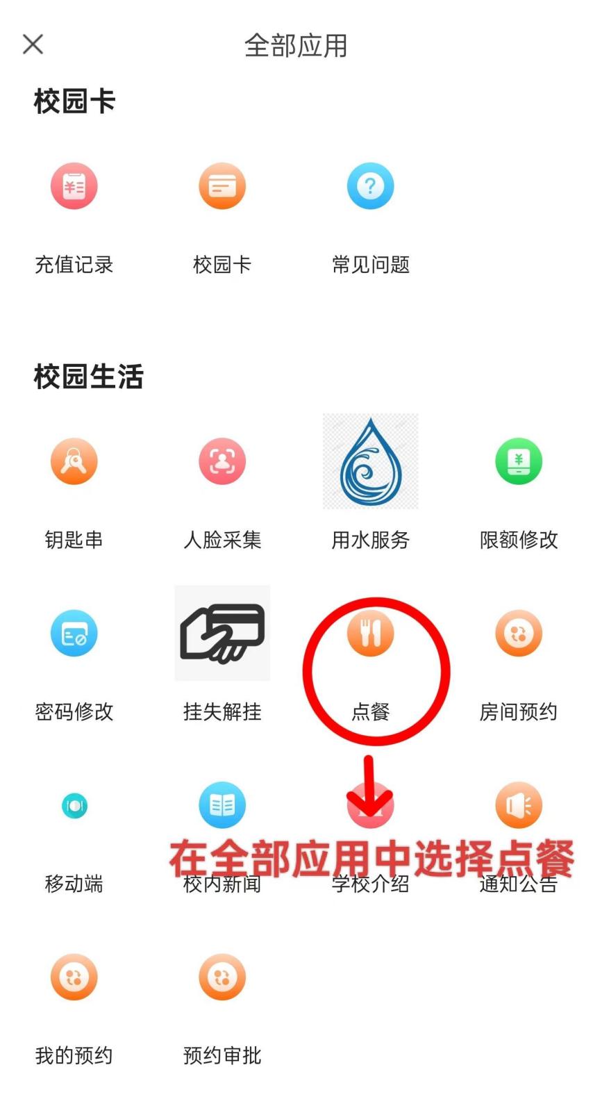 2.在全部应用中选择点餐;