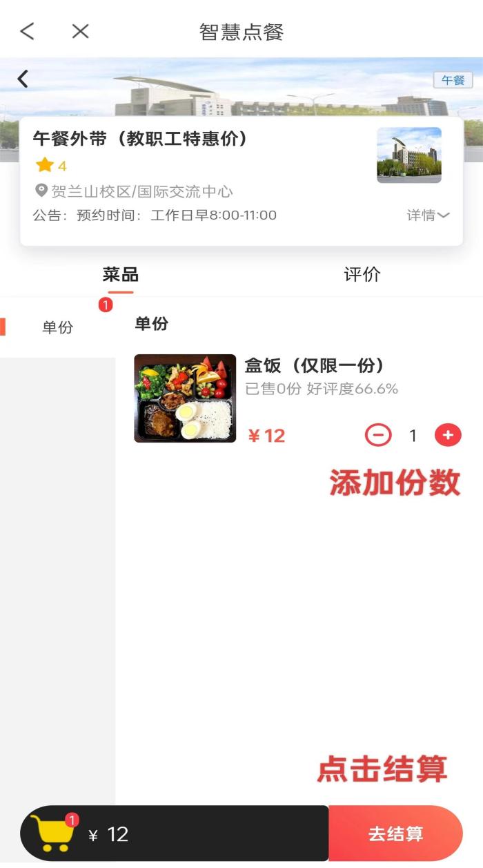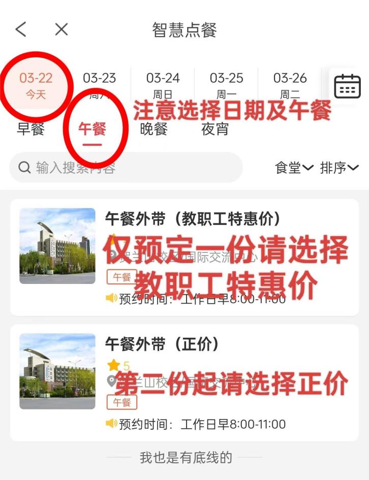 3.选择日期、午餐及价格类别,请注意第一份教职工特惠价12元/份,第二份35元/份;