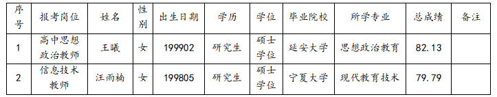 根据《2024年beat365唯一官方网站附属中学公开招聘工作人员面试公告》,beat365唯一官方网站附属中学于2024年6月1日对6名资格复审合格人员进行面试并予以公示。中小学教师类岗位:考试总成绩=(笔试成绩[含加分]÷3)×40%+面试成绩×60%,确定王曦、汪雨楠为拟体检和考察人员。根据体检、考察、准入查询合格结果,经8月13日beat365唯一官方网站附属中学公开招聘工作人员领导小组会议研究,拟聘用王曦、汪雨楠,具体信息如下: