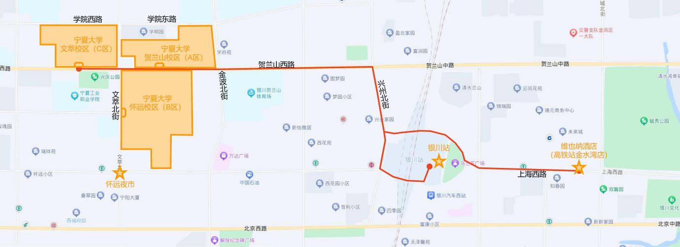(1) Yinchuan Railway Station: Take a taxi or walk to Vienna Hotel (Yinchuan High-speed Railway Shop), 6-10 minutes.