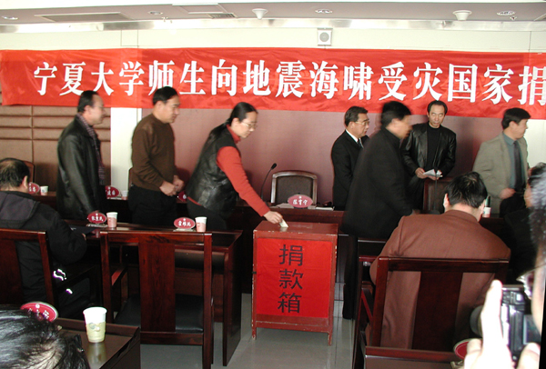 自2004年12月26日印度洋发生大地震海啸以来,国际社会和中国各界极为关注,并通过各种形式向受灾国实施援助。校党委号召广大师生员工发扬人道主义精神,向受灾国家伸出援助之手,献出一片爱心,积极捐款。beat365官网广大师生员工积极响应校党委的号召,捐款活动已于1月6日开始。