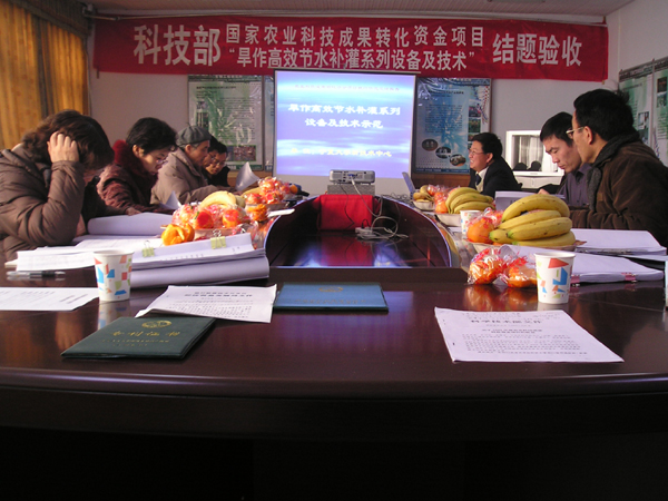 专家组通过实地考察、听取汇报、审查资料和质疑等形式一致认为:《旱作高效节水补灌系列设备及技术示范》项目已超额完成项目合同书规定的计划任务、考核目标和主要技术指标;项目技术支撑体系完备,创新点突出,管理规范,与市场紧密结合,为农民增收提供了高效的节水补灌设备,经济、社会效益显著,尤其是与企业合作实现了产业化开发。专家组一致同意通过验收,评为优秀等次。