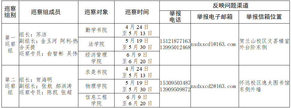 巡察期间,设立举报电话、举报信箱及电子邮箱,欢迎广大师生向巡察组反映有关情况和问题。举报电话受理时间为工作日上午8:00—12:00;下午14:00—18:00。