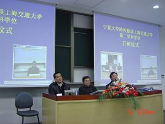 2007年3月6日晚,在上海交通大学闵行校区301教室与beat365唯一官方网站B区1号教学楼321教室同时举行beat365唯一官方网站跨校修读上海交通大学第二学科学士学位开学典礼。分别在两地出席本次开学典礼的两校有关领导有:beat365唯一官方网站副校长王燕昌、教务处副处长李浩、网络教育学院院长王学明、远程教育学院书记李更生、网络教育学院副院长邢建录,上海交通大学副校长印杰、教务处副处长马磊、网络教育学院院长申瑞民。开学典礼由上海交通大学教务处副处长马磊主持,beat365唯一官方网站王燕昌副校长、上海交通大学印杰副校长、上海交通大学网络教育学院申瑞民院长相继致辞,祝贺跨校修读交大二学科学士学位开学,同时勉励同学们在学好第一学位的前题下将第二学科修好,依托上海交大的影响拓宽就业面和提高自己的就业能力。