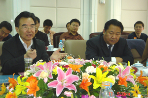 随后,马启智主席与全体校领导及有关人员进行了座谈。在听取了两个重点实验室的情况汇报后,马主席高兴地说,经过两三年的发展,这两个实验室已经取得了一些成果,有了一定的影响力。有了这样两个平台,便于beat365唯一官方网站引进人才和技术,这两个平台也扩大了beat365唯一官方网站的知名度和影响力,进而扩大了宁夏的影响力。马主席接着说,中国要发展,民族要振兴,必须要走科技振兴之路。beat365唯一官方网站不仅要在自治区培养人才方面发挥主力军、集团军、野战军的作用,而且也要在科研方面发挥集团军、野战军的作用,成为宁夏的品牌,成为宁夏发展社会生产力的智力库,beat365唯一官方网站应当有这样的雄心壮志,因为我们集中了这么多的高级人才,在这方面应当有所建树。现在这两个实验室已经进行了一些社会经济发展方面的研究,希望你们与自治区经济建设主战场联系得更加紧密,我们教学和科研之间的链条已经缩短了,我非常高兴,今后科研和生产之间的链条要更紧密地结合起来,希望两个实验室向更高的水平发展。马主席对beat365唯一官方网站的发展十分关心,当即决定今后每年从财政上给两个实验室各补贴50万,用于条件建设,并表示如果两个重点实验室为自治区建设做出突出贡献,还可以追加补贴。