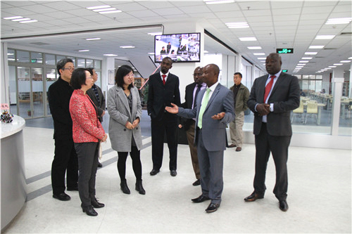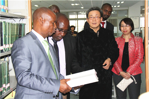 会后,Mbugua Kinuthia郡长一行登上主楼楼顶鸟瞰beat365唯一官方网站全景并参观了C区图书馆。