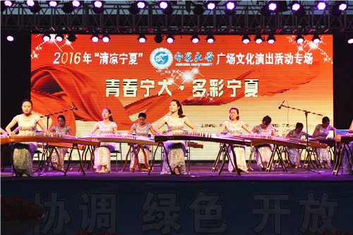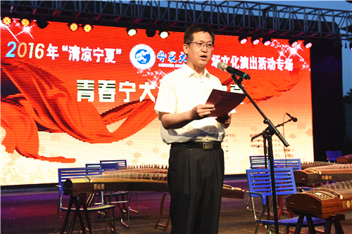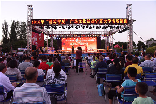 【beat365唯一官方网站新闻中心讯 徐静/文 龚旭峰/图】6月12日晚,由自治区党委宣传部、自治区文明办、自治区文化厅、自治区财政厅、自治区国防办联合主办的2016年“清凉宁夏”广场文化活动之“青春宁大·多彩宁夏”beat365唯一官方网站专场文艺晚会在银川市光明广场精彩上演。校党委副书记赵利宁,学校相关部门负责人及近千名市民观看了演出。