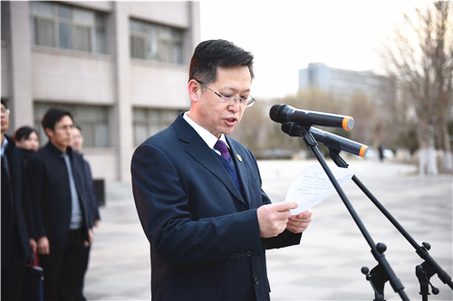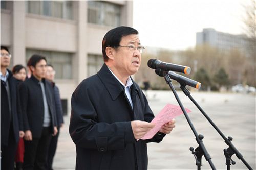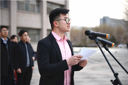 随后,政法学院郑凯同学作为学生代表进行发言。他号召同学们做新时代宁大学子,不负春光勤耕耘,志存高远,脚踏实地,争做能够担当起民族复兴大任的时代新人,用激情点燃梦想,用理想照亮人生,为新时代学校事业的发展贡献青春力量。