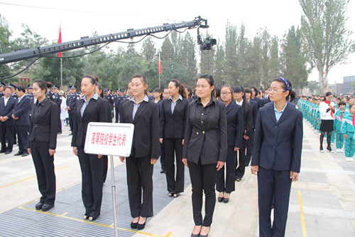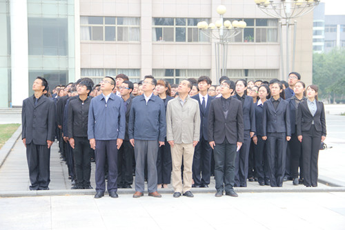 早上八点半,校党委副书记赵利宁,党委宣传部部长冯奎,学生处副处长刘伯川,校团委副书记马慧,校学生会全体干部、各学院学生会主席团、国防生代表、经济管理学院学生代表500余人在校本部A区国旗下举行了隆重而庄严的升国旗仪式。在雄壮的国歌声中,神圣的五星红旗在国防生仪仗队的护卫下冉冉升起。在庄严的国旗下,校学生会主席夏金柱向全校师生发出“凝心聚力、奋发有为,做社会主义事业的合格建设者和可靠接班人”的倡议。