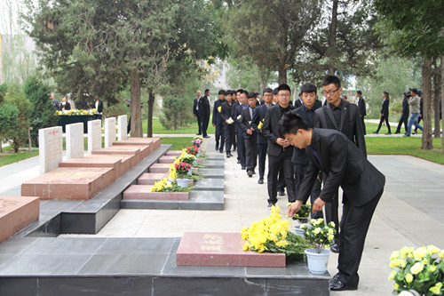十点整,校团委、学生会一百名干部怀着无比崇敬的心情代表全区大中专学生,参加了在八里桥革命烈士公墓举行的银川各界烈士纪念日公祭活动,在工作人员的带领下,大家瞻仰了烈士纪念碑、烈士墓,向烈士墓献花,并参观了烈士纪念厅,追思革命先烈的丰功伟绩。