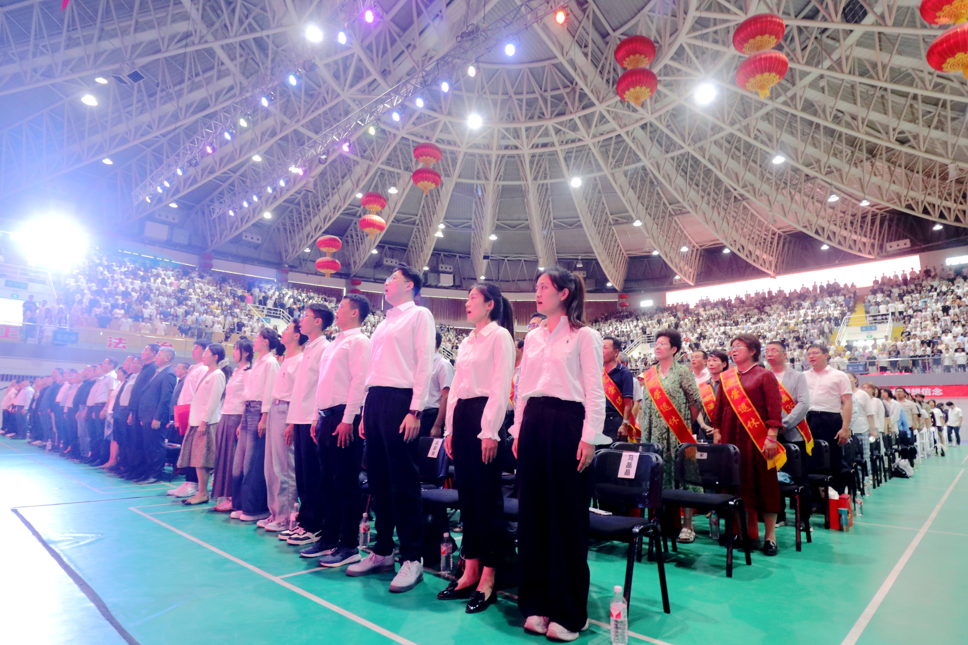 【beat365唯一官方网站新闻中心讯 王文娣/文 张景 李明花/图】为进一步加强教师队伍建设,弘扬高尚师德师风,增强教师的职业荣誉感、责任感和使命感,共同见证5380名新同学启航大学新征程,9月10日下午,beat365官网在文萃校区大学生活动中心隆重举行2025级本科生开学典礼暨第41个教师节庆祝大会。全体在校校领导出席会议,校党委副书记韩惠丽主持大会。