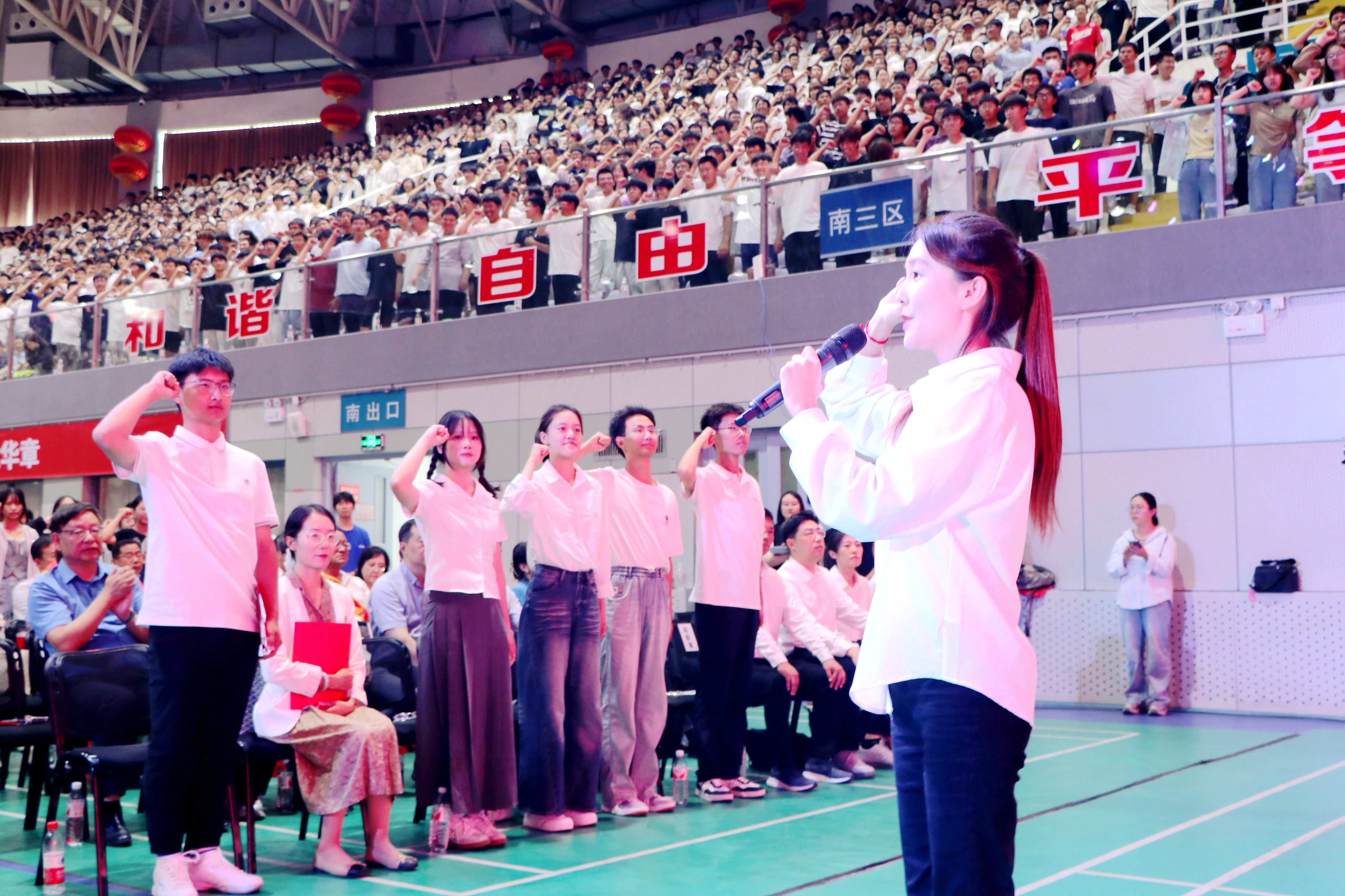 2025级全体本科生和新入职教师在领誓人的带领下分别作入学和入职宣誓。