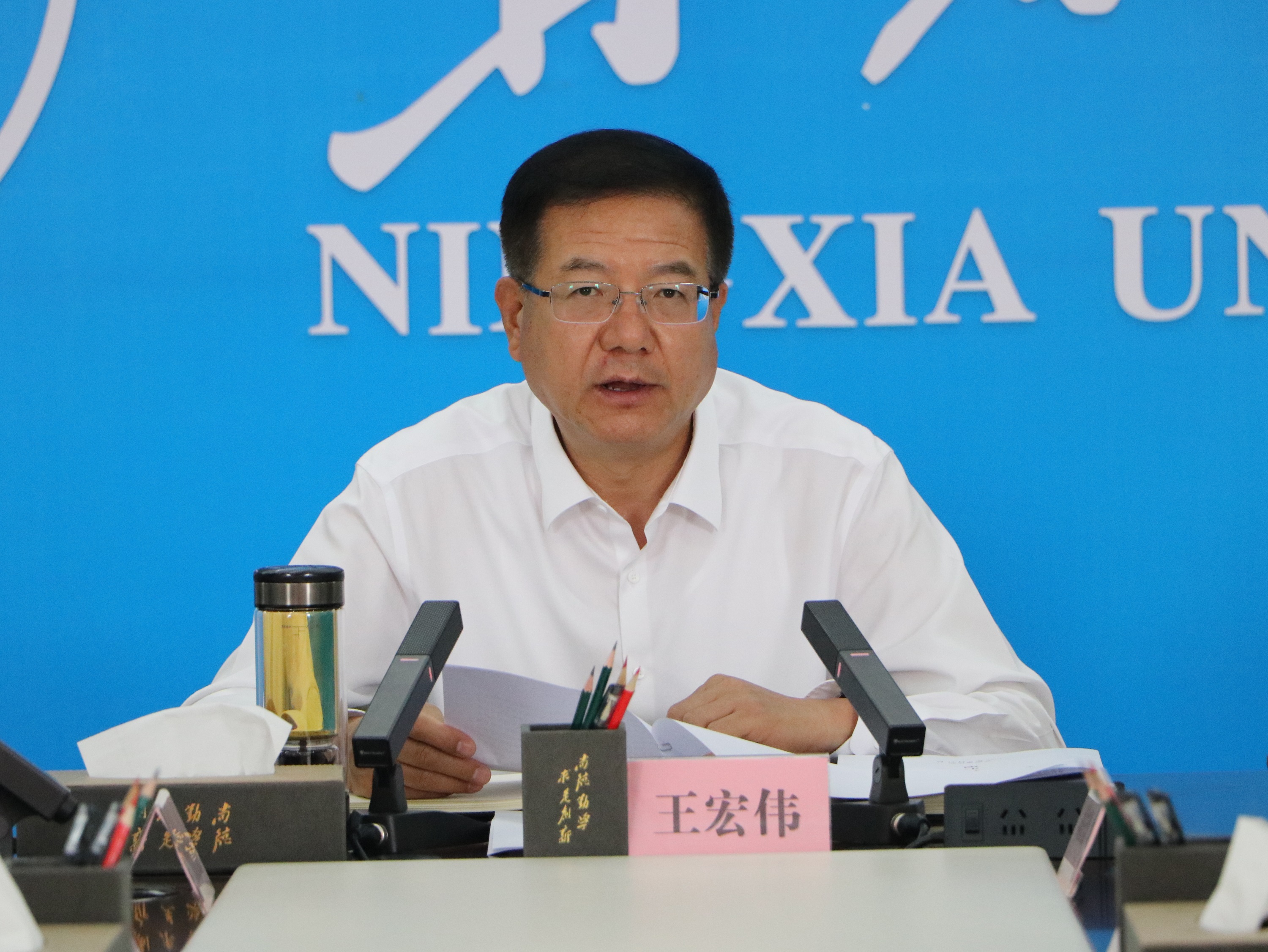 【beat365唯一官方网站新闻中心讯 李明花 文/图】为学习习近平总书记在纪念中国人民抗日战争暨世界反法西斯战争胜利80周年大会上的重要讲话,大力弘扬伟大抗战精神,9月11日,学校党委召开校党委理论学习中心组第9次学习会,校党委书记王宏伟主持会议,并围绕“传承和弘扬伟大抗战精神”作出要求。