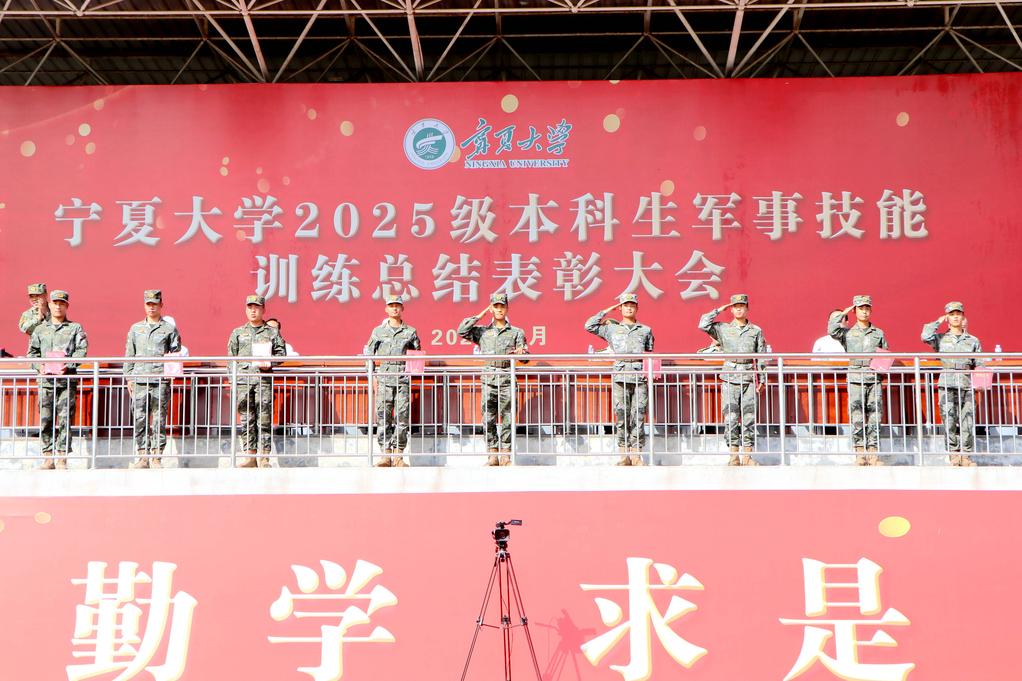 校党委常委、副校长、学校军训工作领导小组组长黄河代表学校向帮助指导beat365官网军训工作的宁夏军区、自治区教育厅、武警宁夏总队表示诚挚感谢,向承担beat365官网2025级学生军训任务的武警银川某部的官兵致以崇高敬意,向参与组织军训工作的领导和老师表示亲切慰问,向胜利完成各项军训任务的同学们表示热烈祝贺。他表示,军训不仅是一次体能和意志的淬炼,更是一堂引导青年筑牢正确国防观、历史观的沉浸式思政大课。他希望同学们以军训为新的起点,继续保持和发扬在军训中形成的优良作风,把“听党指挥、能打胜仗、作风优良”的传统融入日常,把“令行禁止、严守纪律”的要求转化为行为习惯,把“团结互助、勇于拼搏”的精神延伸至学习实践,树立远大理想,胸怀“国之大者”,不断增强志气、骨气、底气,努力成长为有理想、敢担当、能吃苦、肯奋斗的新时代好青年。