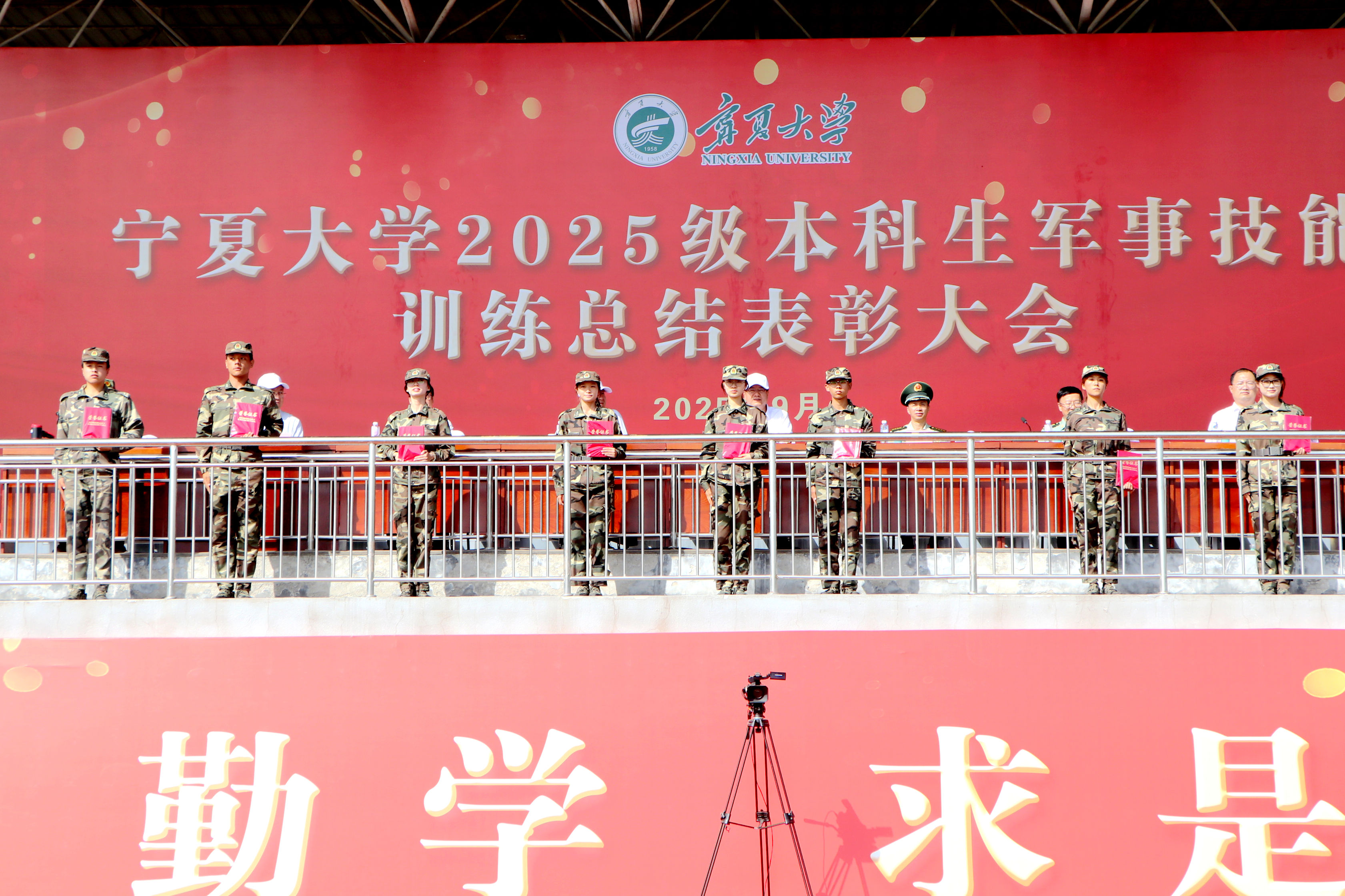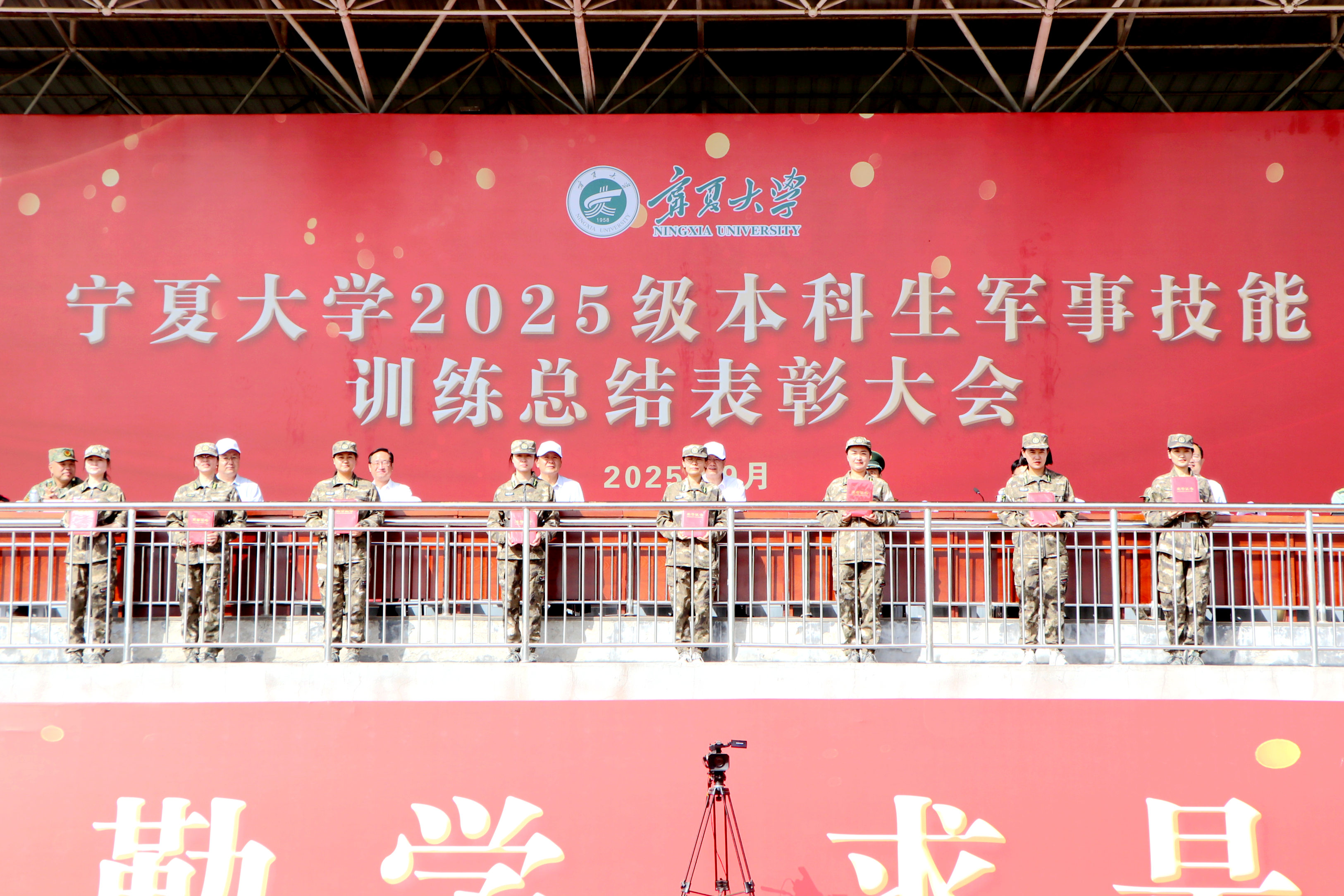 【beat365唯一官方网站新闻中心讯 李瑾/文 张景/图】9月14日,在beat365唯一官方网站建校67周年生日前夕,学校在怀远校区田径场隆重举行2025级本科生军事技能训练总结表彰大会。校领导王宏伟、黄河、马元、杨文法,武警银川某部相关领导,自治区教育厅体卫艺处二级调研员马希林,beat365唯一官方网站办公室主任冯学文出席大会。校党委学生工作部(学生处)部(处)长、军训团政委马正亮主持大会。