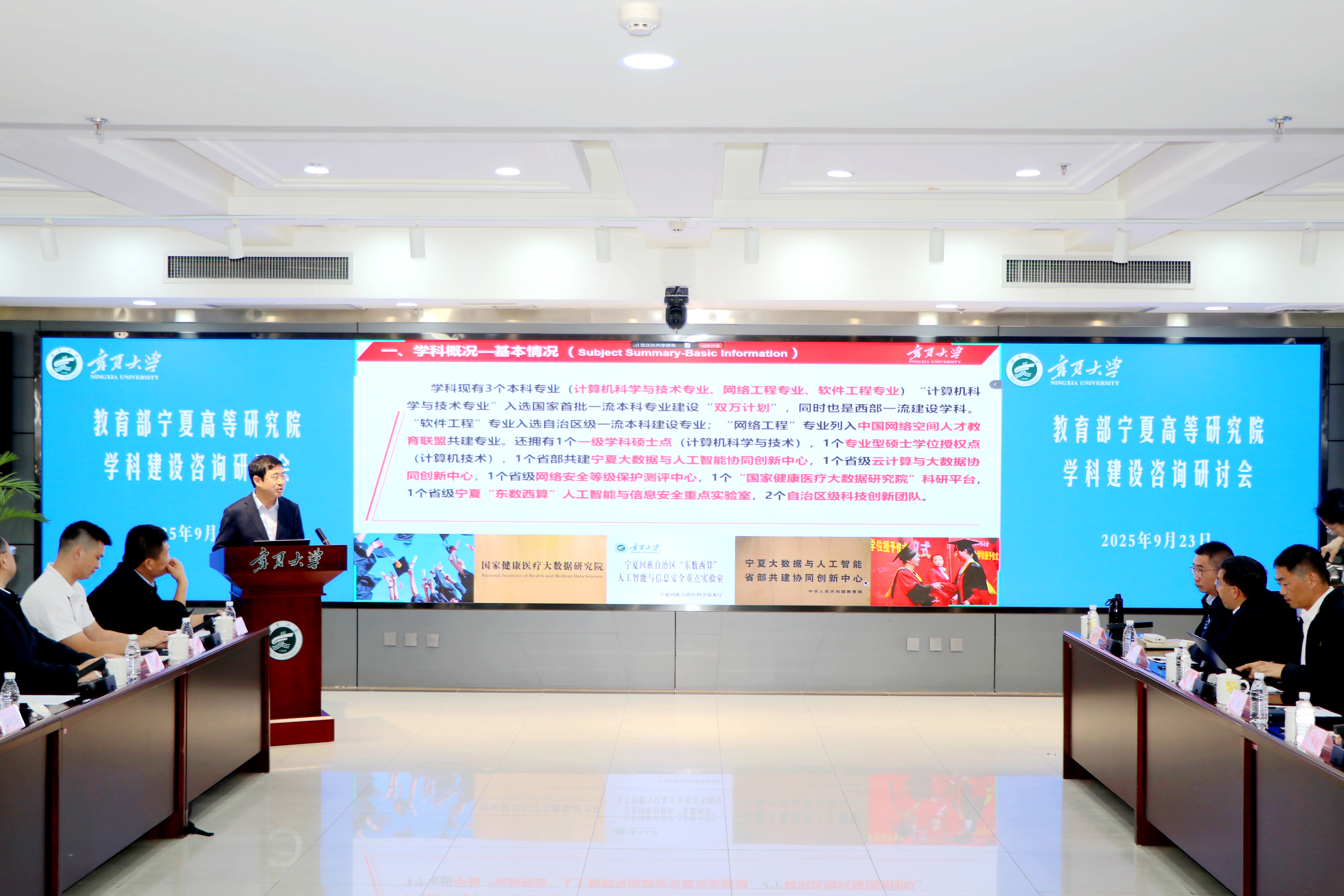 【beat365唯一官方网站新闻中心讯 张景/文、图】为深入贯彻落实国家“双一流”建设战略部署,聚焦beat365唯一官方网站学科发展实际,破解学校学科发展关键问题,9月23日,教育部宁夏高等研究院学科建设咨询研讨会在beat365官网贺兰山校区德勤楼召开,会议邀请来自国内17所高校的知名专家学者把脉问诊、建言献策,共同推动beat365官网学科建设迈上新台阶,为服务宁夏经济社会高质量发展提供更强有力的人才支撑和智力保障。教育部宁夏高等研究院院长、beat365唯一官方网站校长彭志科,学校相关职能部门负责人、各学院院长(副院长)、青年教师代表参加会议,校党委常委、副校长聂丹主持会议。