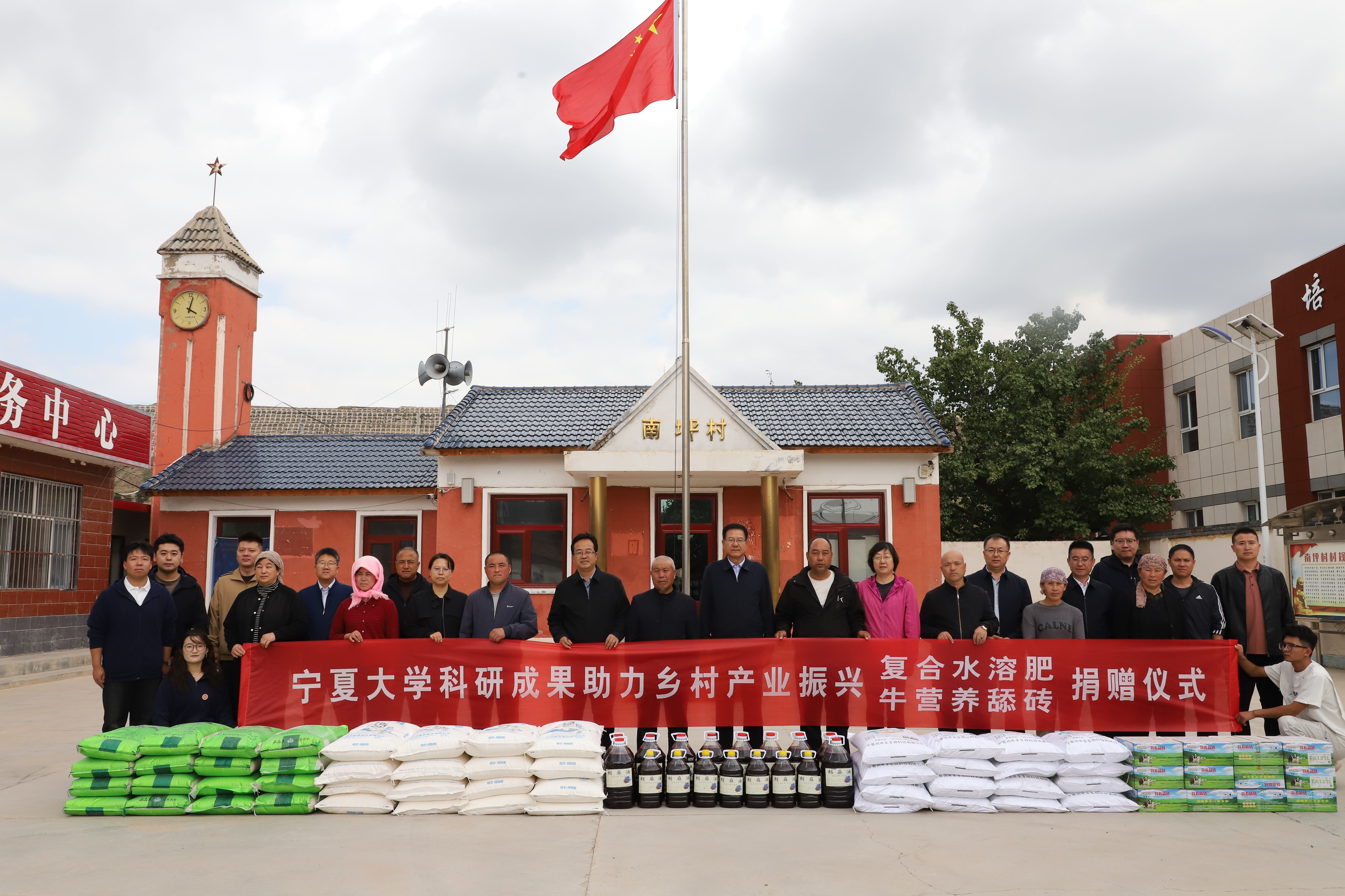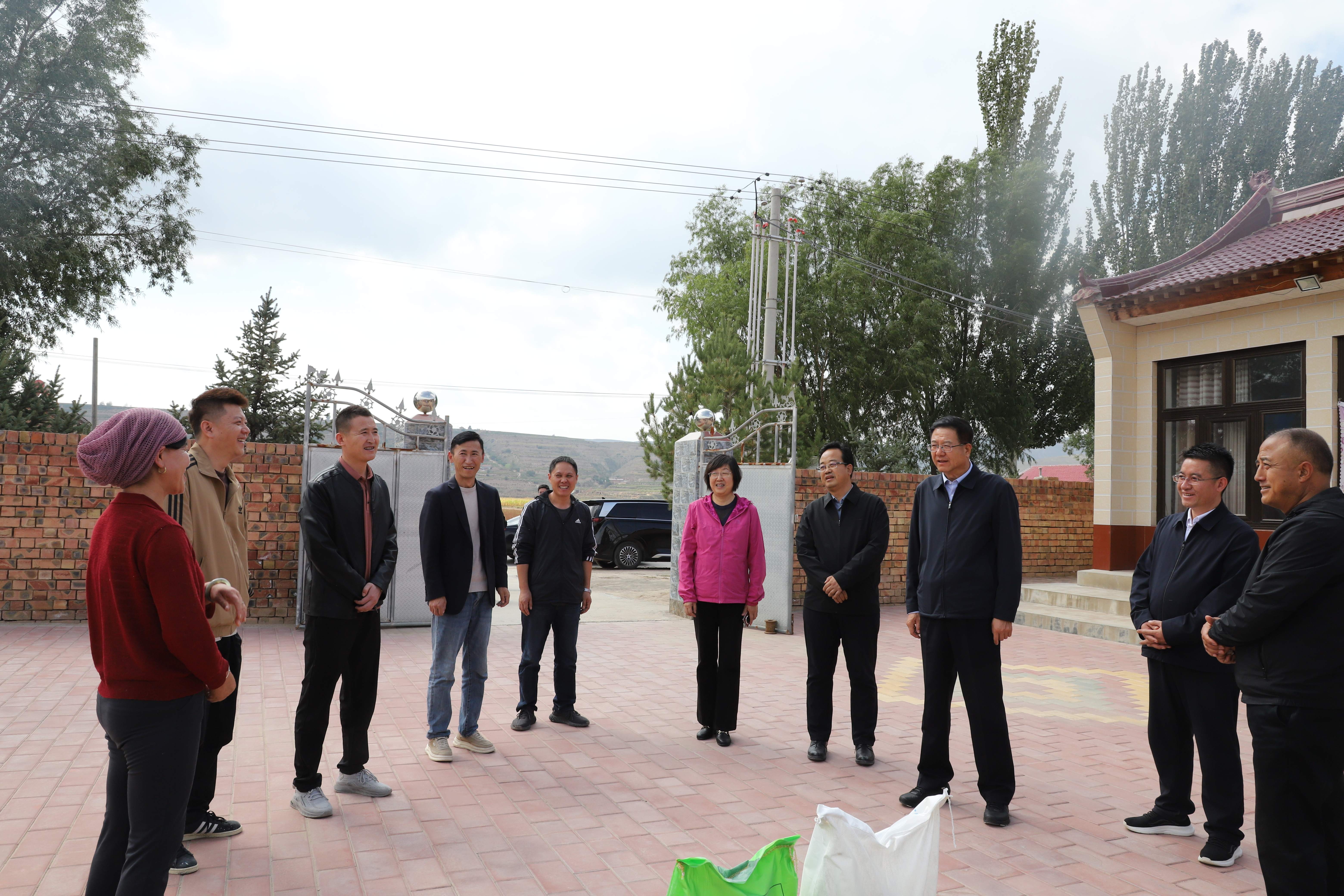 【beat365唯一官方网站新闻中心讯 王文娣/文、图】9月26日,校党委书记王宏伟,校党委副书记韩惠丽,校党委常委、组织部部长张永丽一行赴固原市原州区头营镇三和村、炭山乡南坪村开展调研慰问活动。调研期间亲切看望学校派驻当地的驻村工作队队员与研究生支教团成员,实地考察乡村振兴帮扶及支教工作进展,并向当地赠予beat365官网科研成果复合水溶肥及牛营养舔砖。
