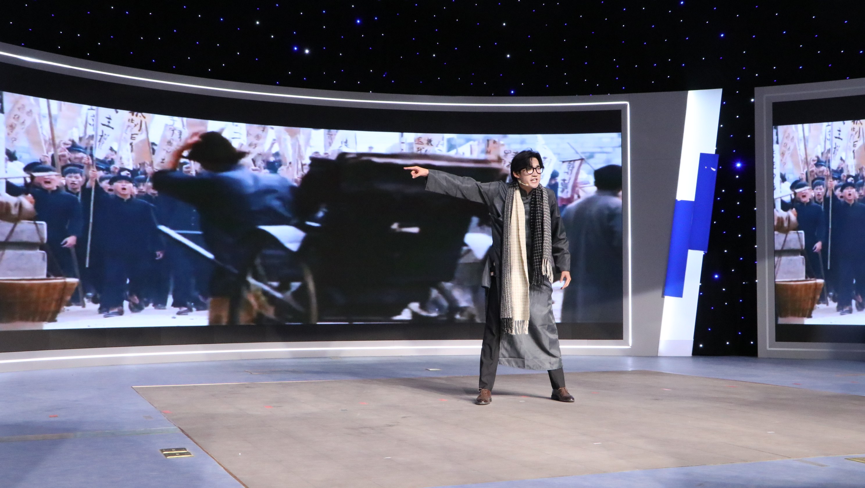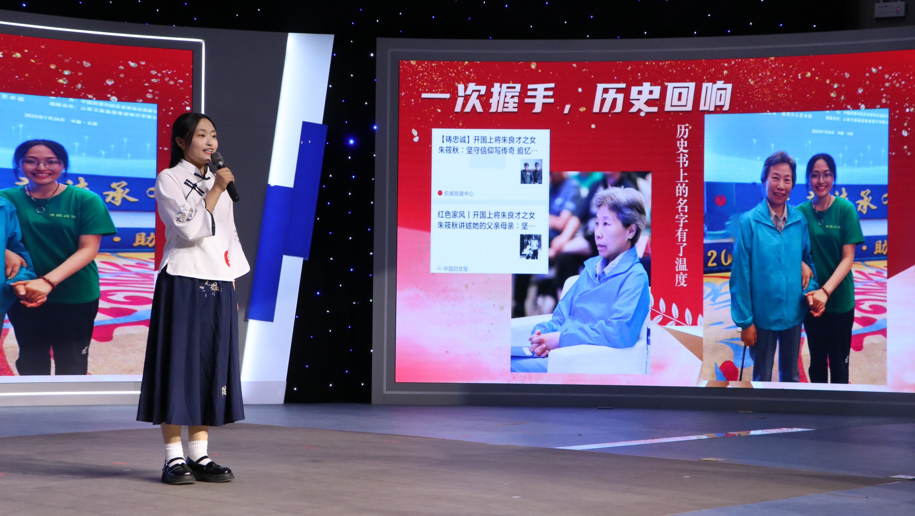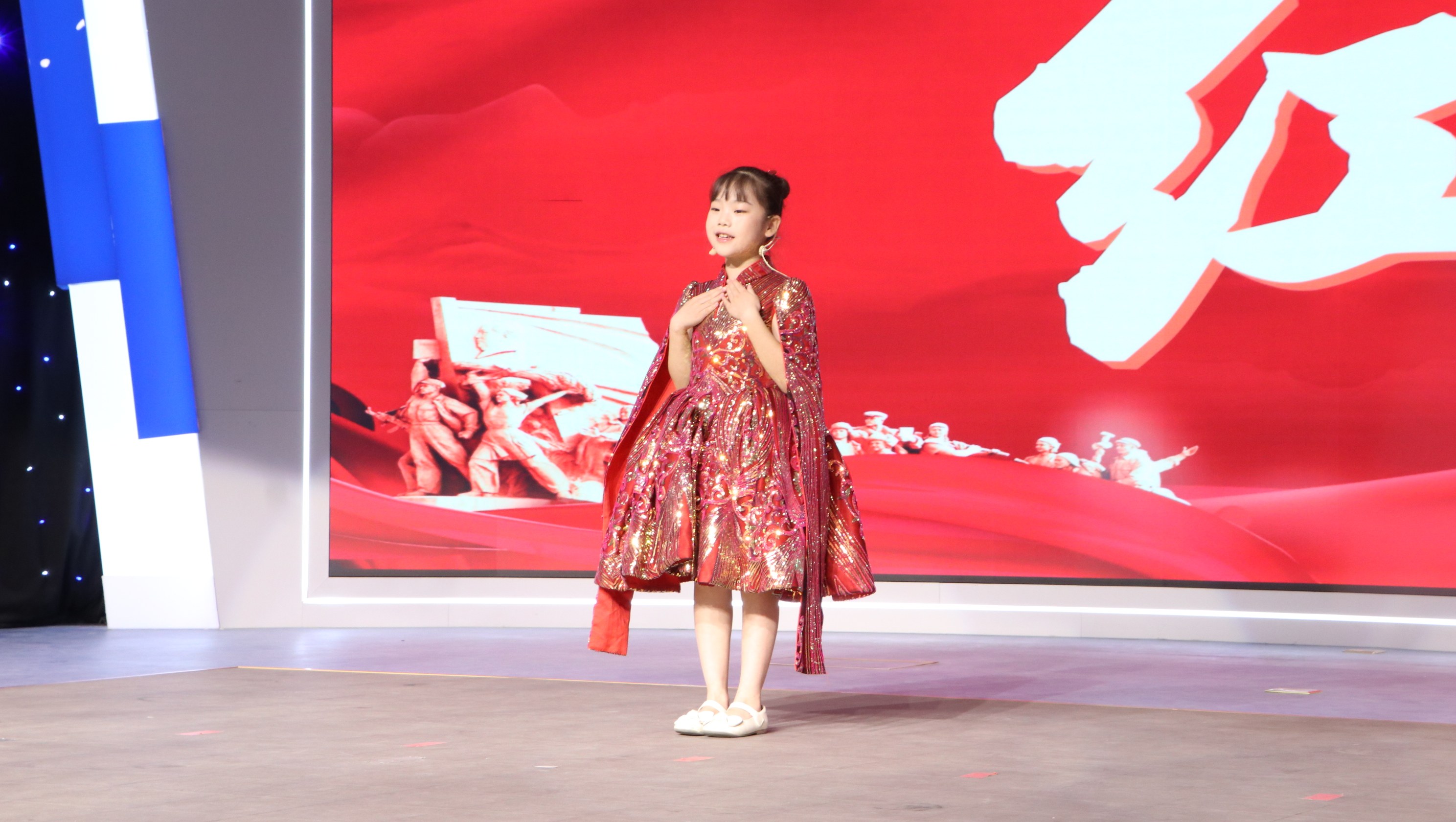 决赛现场灯光璀璨,气氛庄重热烈。选手们以“演说+情景演绎”的创新形式,将红色故事与情感表达深度融合,构建起沉浸式的叙事空间。这不仅是一场语言的盛会,更是一场心灵的互动。通过演与说的形式,强化了文化浸润,传递了团结力量,让红色基因在新时代澎湃出新生力量。