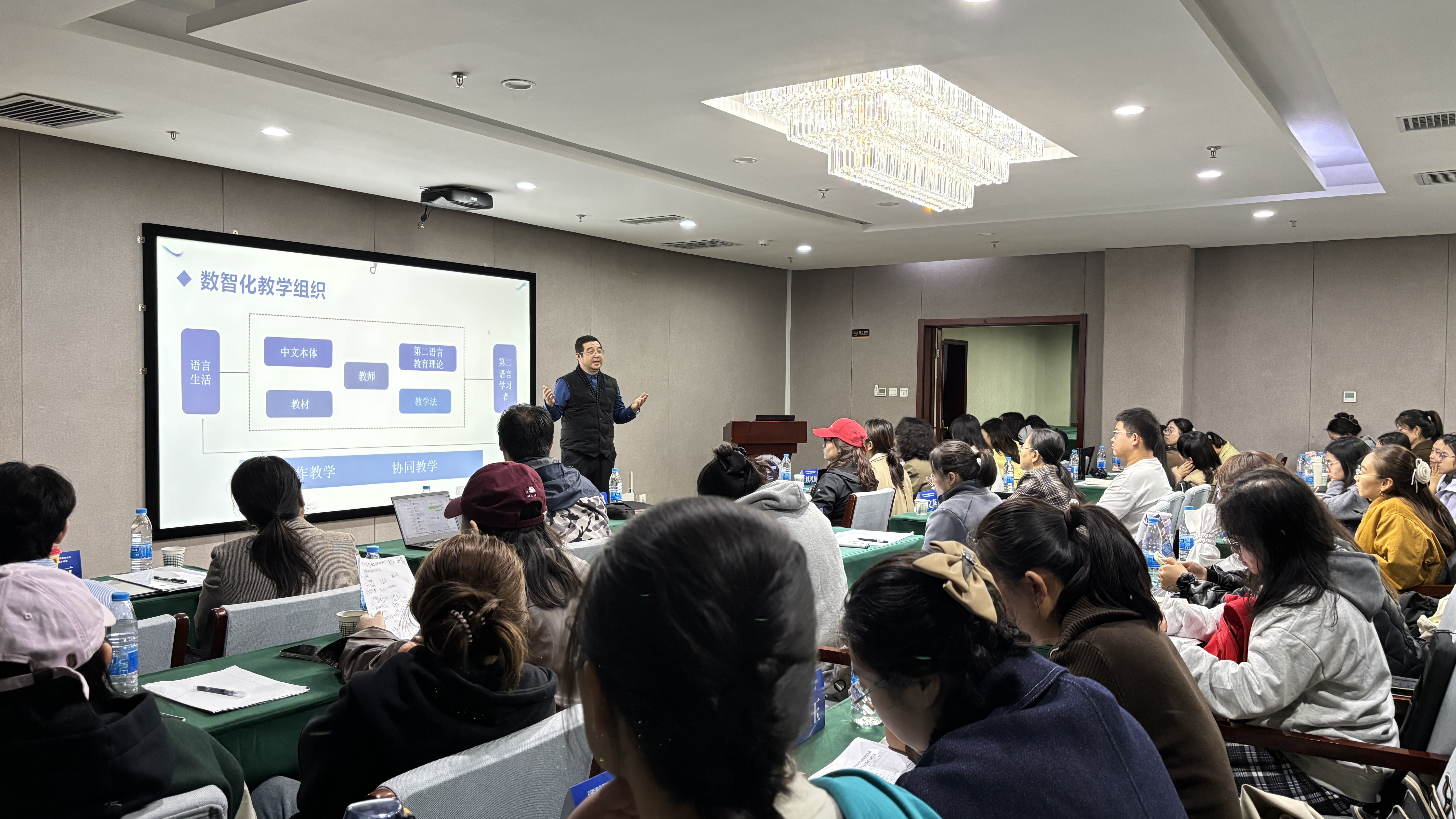 当天下午,在宁夏国际中文教师数智素养提升培训中,荀恩东教授做了题为《国际中文数智化教育理论和实践》的专题讲座,从数智化时代的国际中文教育、国际中文教育数智化框架、国际中文数智化教育内涵、国际中文数智化教育实践四个方面作了阐释;饶高琦副研究员的报告《融课件:国际中文智慧教学新载体》带领教师们在线上对北京语言大学开发的国际中文智慧教学系统进行了实际操作,提升了教师在教学中使用数智资源的意识和能力。