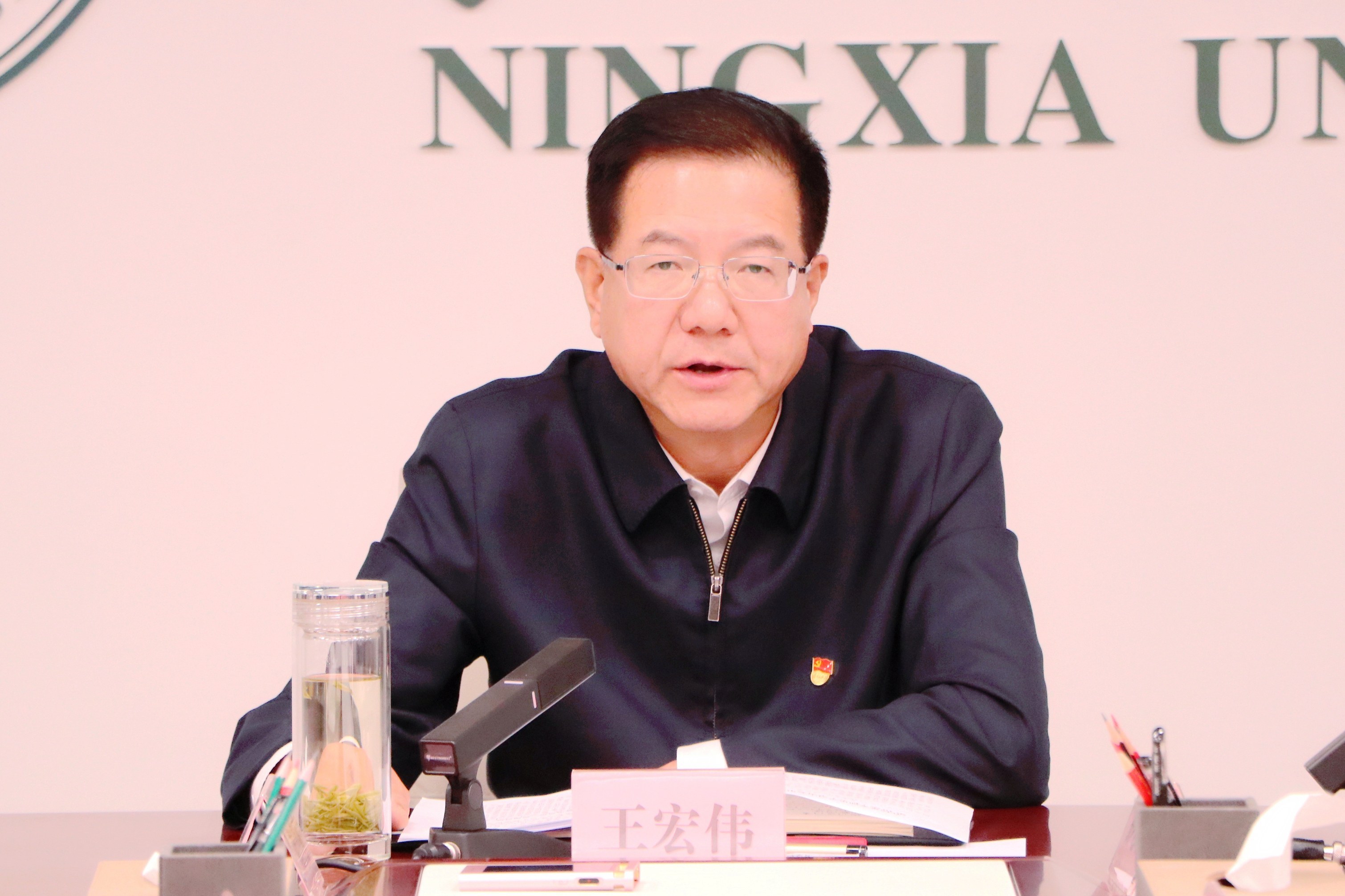 【beat365唯一官方网站新闻中心讯 张景/文、图】为推动全校广泛深入学习贯彻《习近平谈治国理政》第五卷,充分发挥引领示范作用,10月15日,校党委理论学习中心组2025年第10次(扩大)学习会在贺兰山校区德勤楼10楼会议室召开,专题学习《习近平谈治国理政》第五卷。校党委书记王宏伟主持会议,校党委理论学习中心组成员、党委委员、纪委委员参加学习。