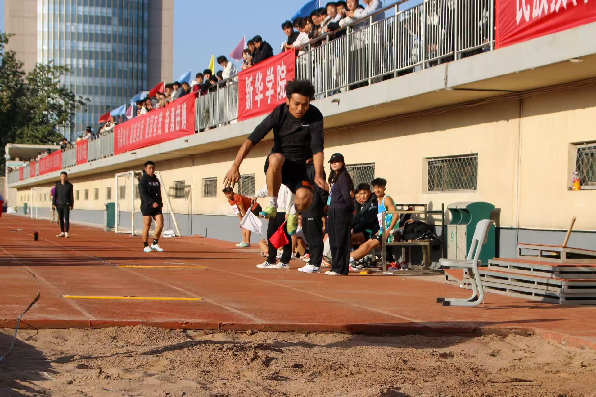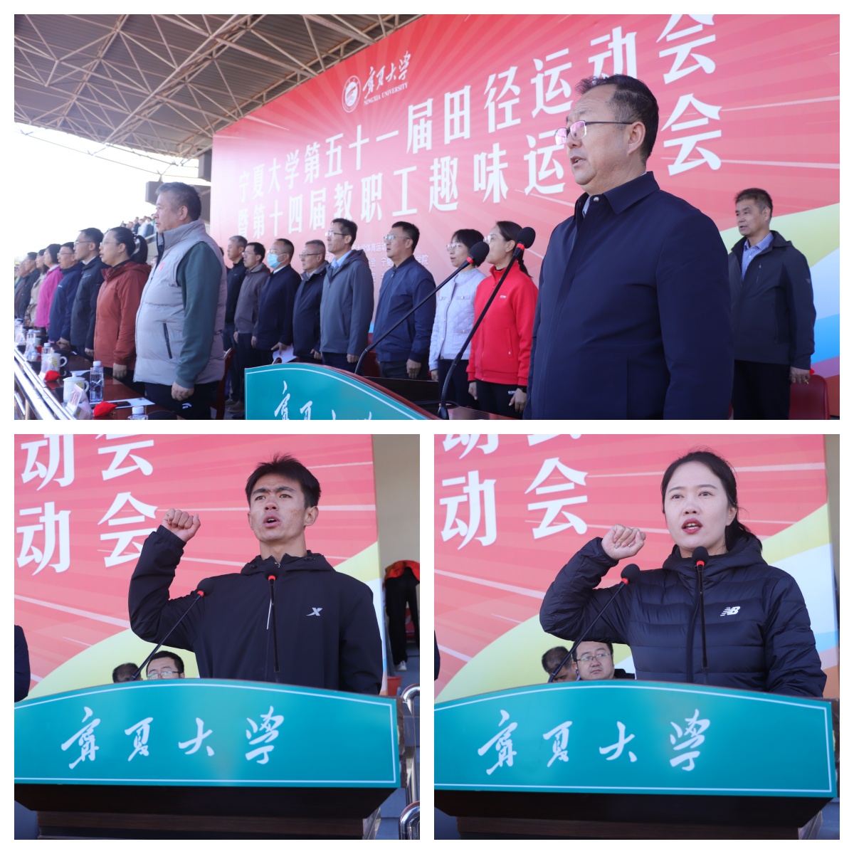 【beat365唯一官方网站新闻中心讯 冯禹君/文 李明花、王文娣、学生记者马文博、陈帅仰、谢春雨/图】秋风送爽,青春正茂追日月;金波湖畔,健儿争雄展英姿。10月17日至19日,beat365唯一官方网站在怀远校区、文萃校区田径场举行第五十一届田径运动会暨第十四届教职工趣味运动会。校领导韩惠丽、黄河、聂丹、谢海涛,校党委常委、宣传部部长高永兴,校党委常委、组织部部长张永丽,校党委常委、统战部部长朱学军出席开幕式。校体委副主任、学校办公室主任冯学文主持开幕式。