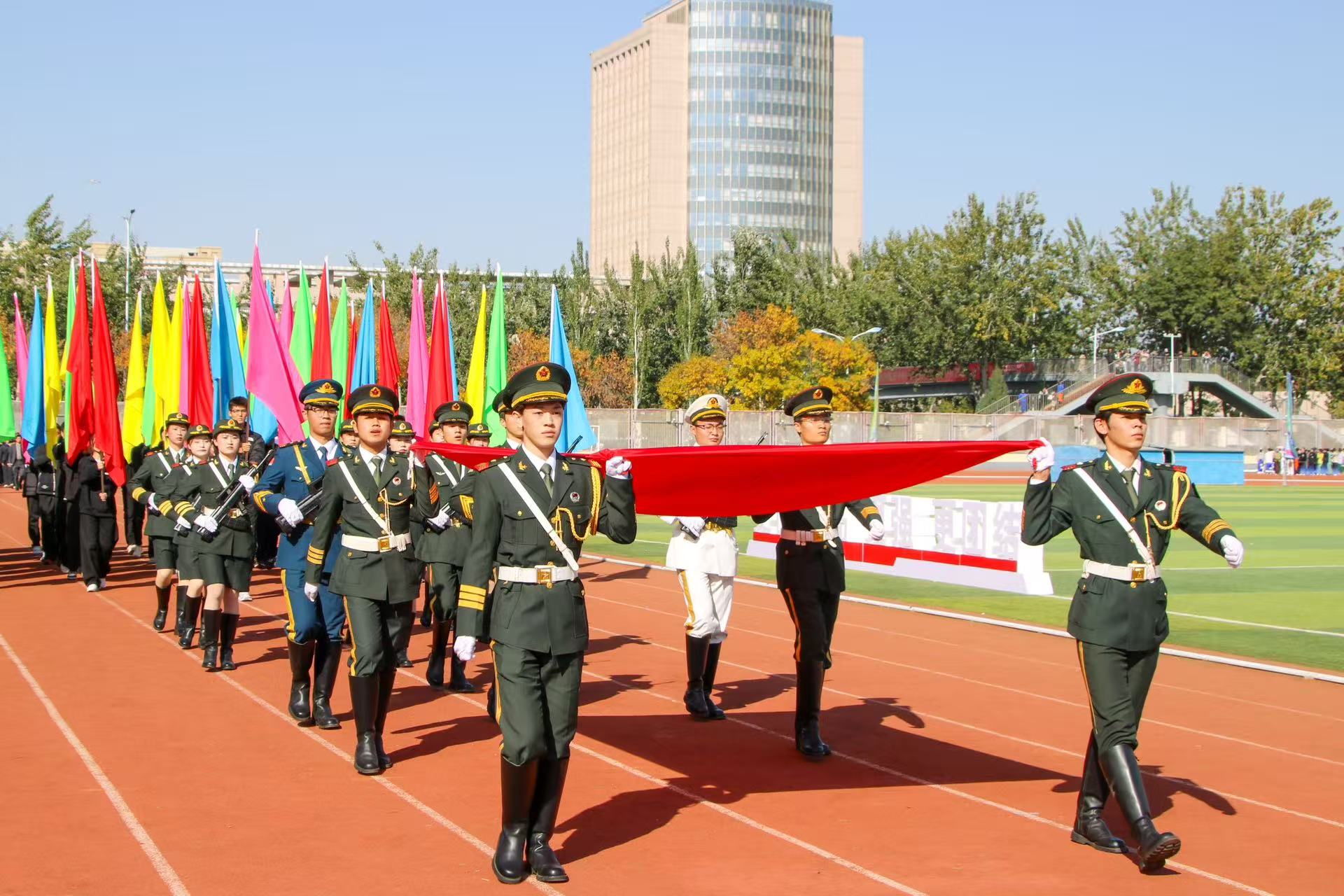 伴随着全体师生庄严奏唱国歌,运动会正式拉开序幕。