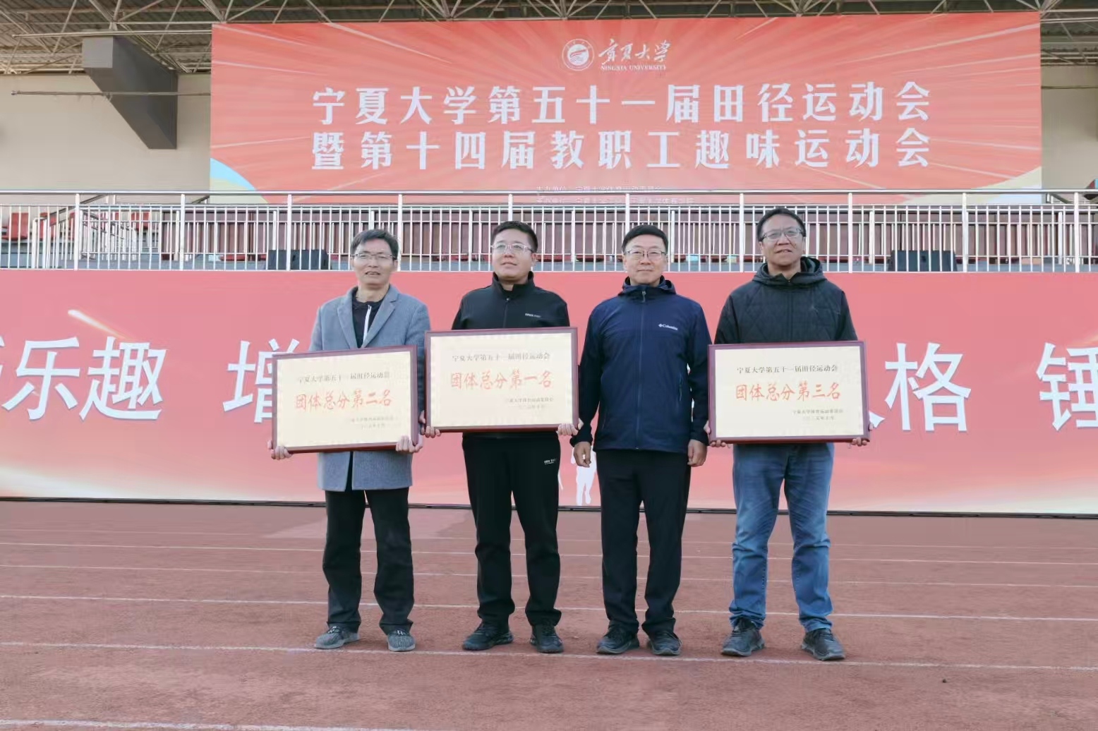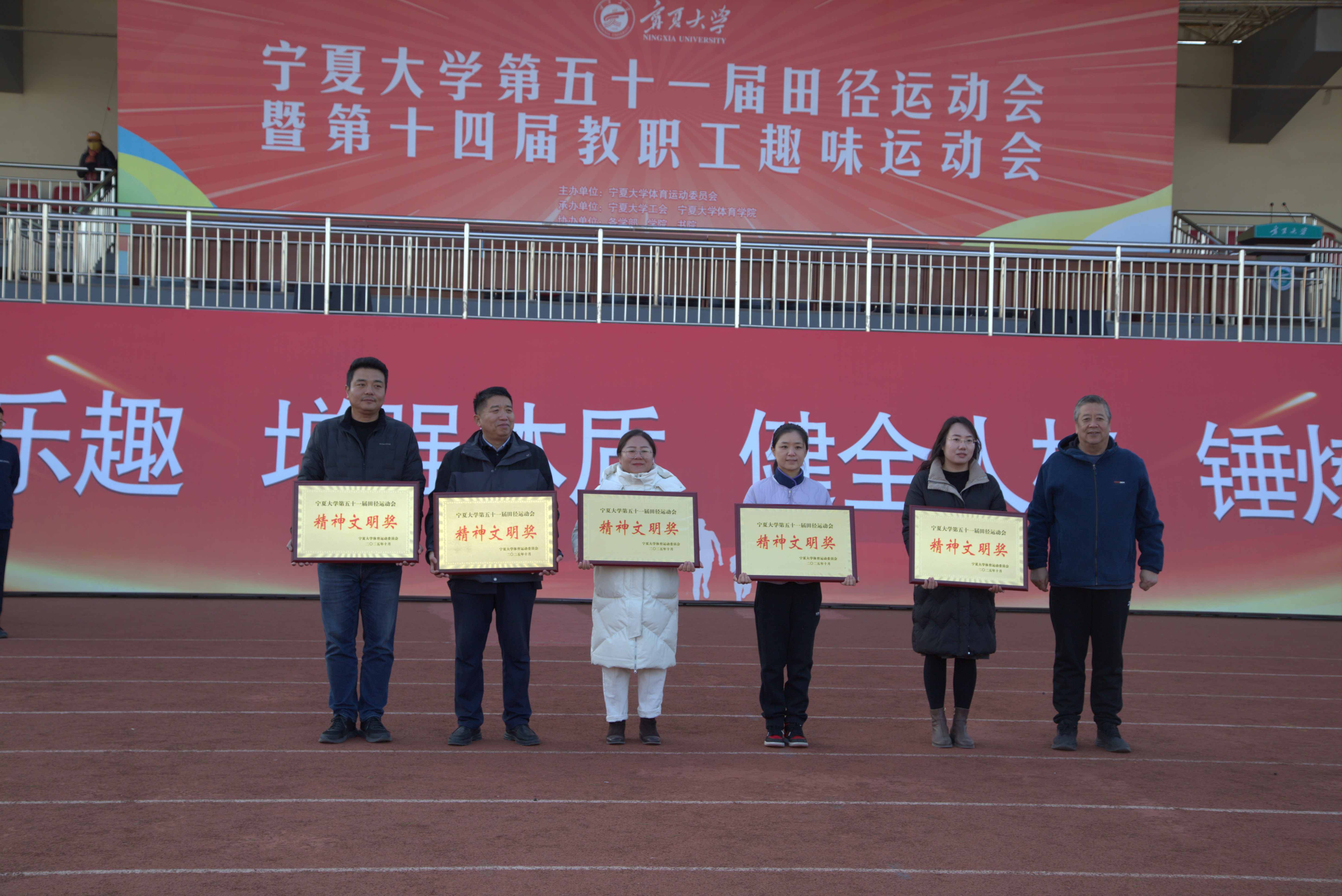 在运动会闭幕式上,对本届田径运动会团体总分前三名单位和“精神文明奖”获奖单位进行表彰。黄河、体育学院党总支书记张守荣参加闭幕式并为获奖单位和团体颁奖。新华学院、勤学书院、励行书院分别荣获团体总分前三名,尚德书院、守正书院、鼎新书院、励行书院、新华学院荣获“精神文明奖”。