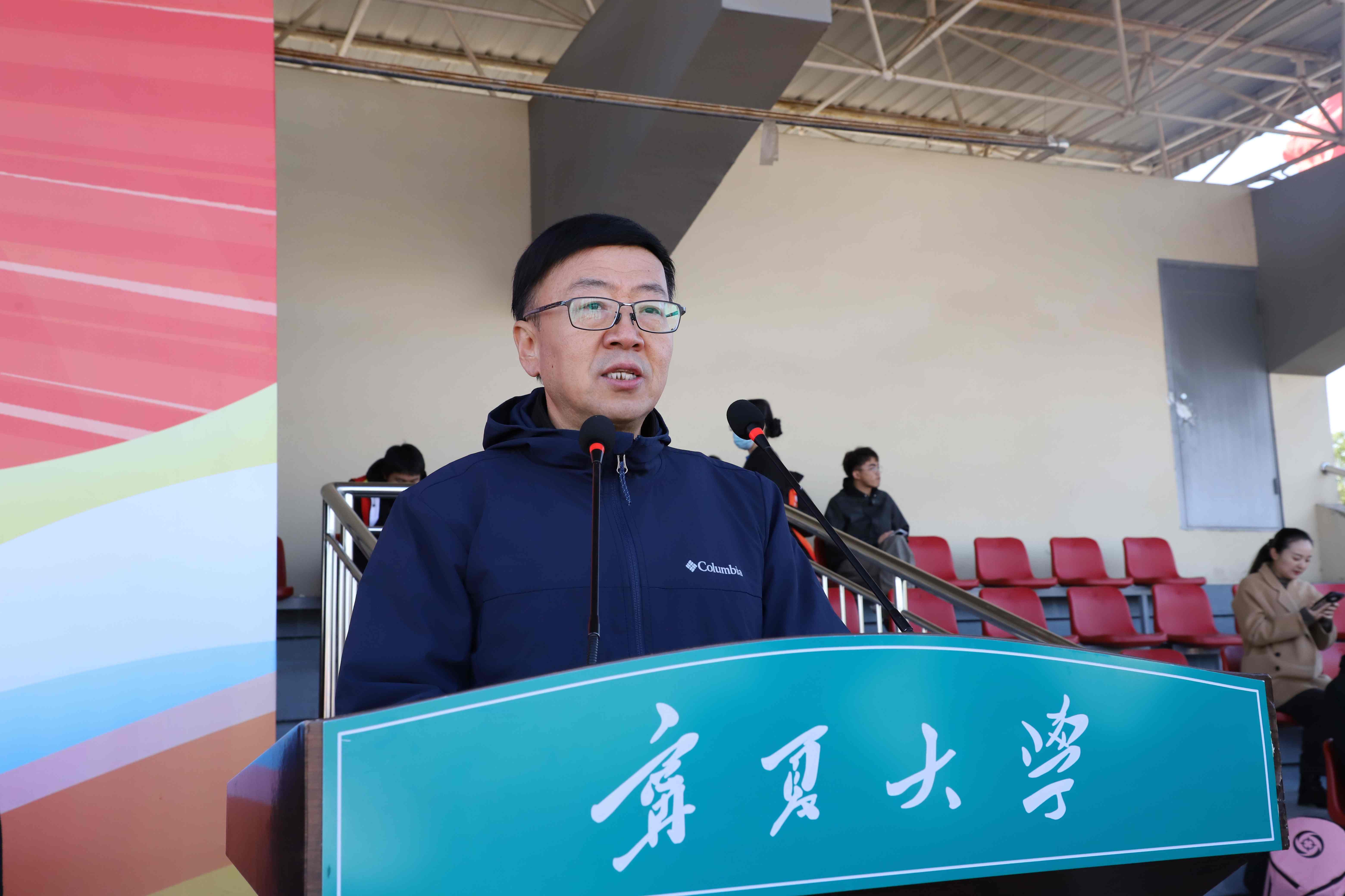 校党委常委、副校长、体委主任黄河致开幕辞。他代表学校向全体参赛师生、裁判员表示诚挚问候,对精心组织筹备运动会的全体工作人员表示衷心感谢。他表示,本届运动会将学生田径运动会与教职工运动会合并举办,旨在以校园体育赛事活动为载体,为师生提供展示风采、促进交流、增进友谊的舞台。他希望全体师生以参与本次运动会为契机,将体育锻炼作为一种生活习惯,将身心健康作为一种人生追求,将体育运动中激发出来的团队意识、拼搏精神转化为刻苦学习、勤奋工作的强大动力,以强健的体魄、饱满的精神状态,共同为高水平西部一流大学建设增添新的活力与光彩。