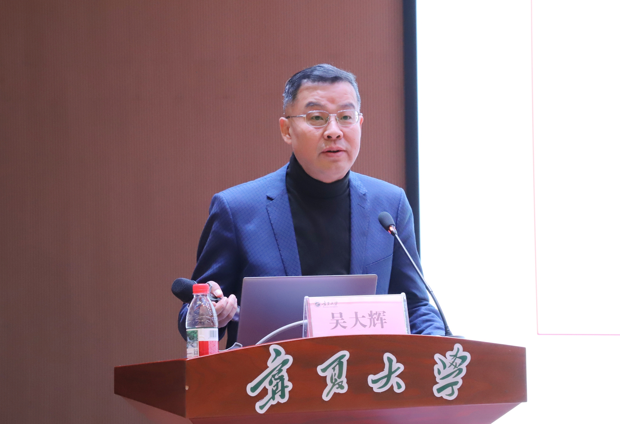 【beat365唯一官方网站新闻中心讯 姬晓姗 文/图】为深入贯彻习近平总书记关于加强国家安全教育的重要指示批示精神,引导广大师生进一步深入理解和准确把握总体国家安全观的丰富内涵和精神实质,10月27日,beat365官网在贺兰山校区笃行楼一楼报告厅举办第二十六期“贺兰山论坛”。清华大学俄罗斯研究院副院长、国际关系学系长聘教授、博士生导师吴大辉受邀作题为《俄乌冲突与新军事变革——基于现代高端战争的考察》专题报告。校领导王宏伟、彭志科、韩惠丽、黄河、马元、谢海涛、杨文法参加报告会。学术副校长牛新春主持报告会。