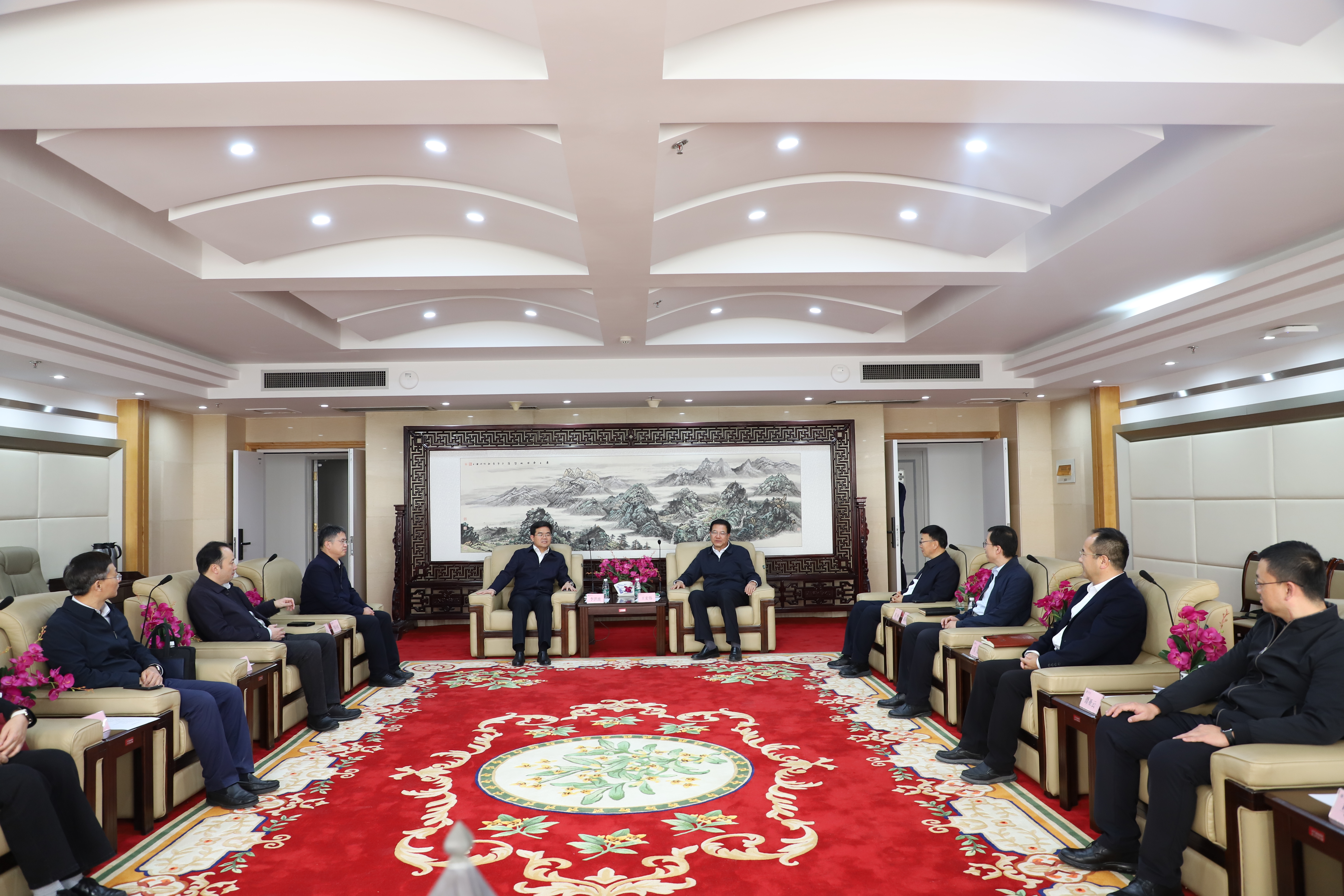 【beat365唯一官方网站新闻中心讯 王文娣/文、图】10月30日下午,江苏大学党委书记李洪波,党委常委、副校长邹小波和任旭东一行来校调研交流并召开座谈会。会前,校党委书记王宏伟在德勤楼会见了李洪波一行。