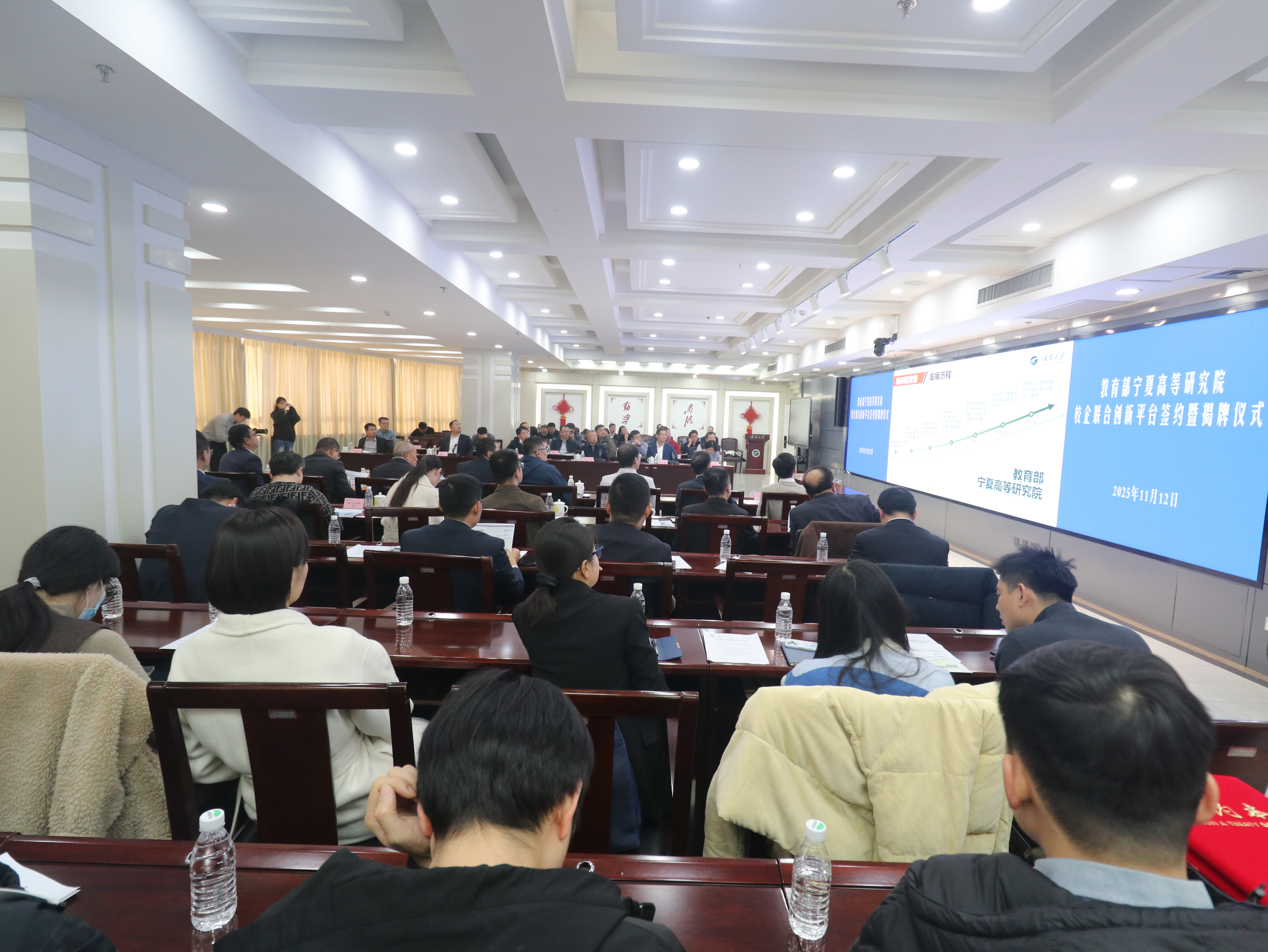 教育部宁夏高等研究院发展服务中心,宁东能源化工基地管委会,合作企业代表,学校相关职能部门、学部、学院负责人参加签约授牌仪式。