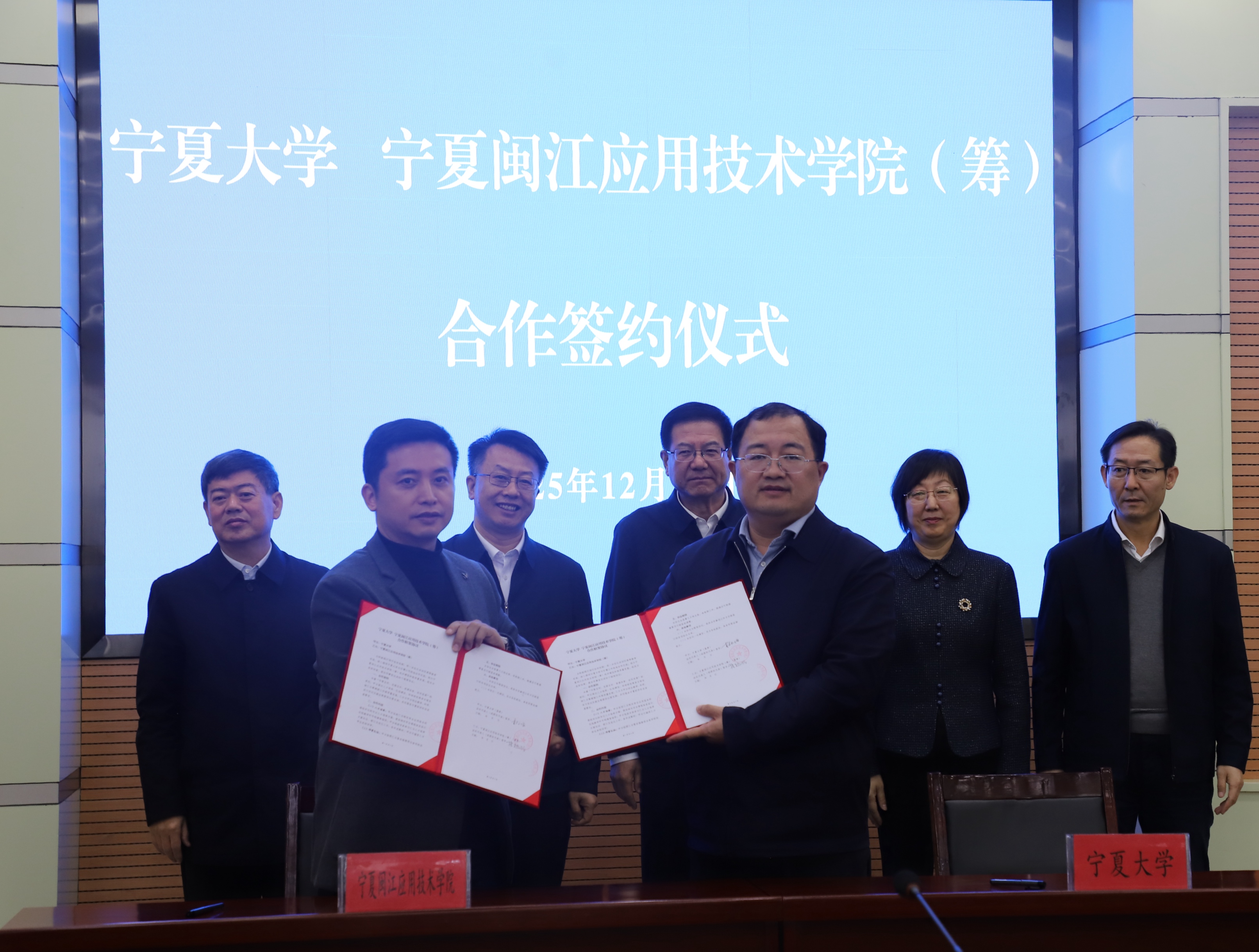 合作签约仪式在石嘴山市会议中心举行。石嘴山市委常委、组织部部长白建军,石嘴山市教育局二级巡视员、宁夏闽江应用技术学院党建指导员陈光华,福建时代人才教育科技集团董事长、宁夏闽江应用技术学院理事长林捷兴出席签约仪式。签约仪式由石嘴山市教育局党组书记、局长、市教育党工委书记张学仁主持。