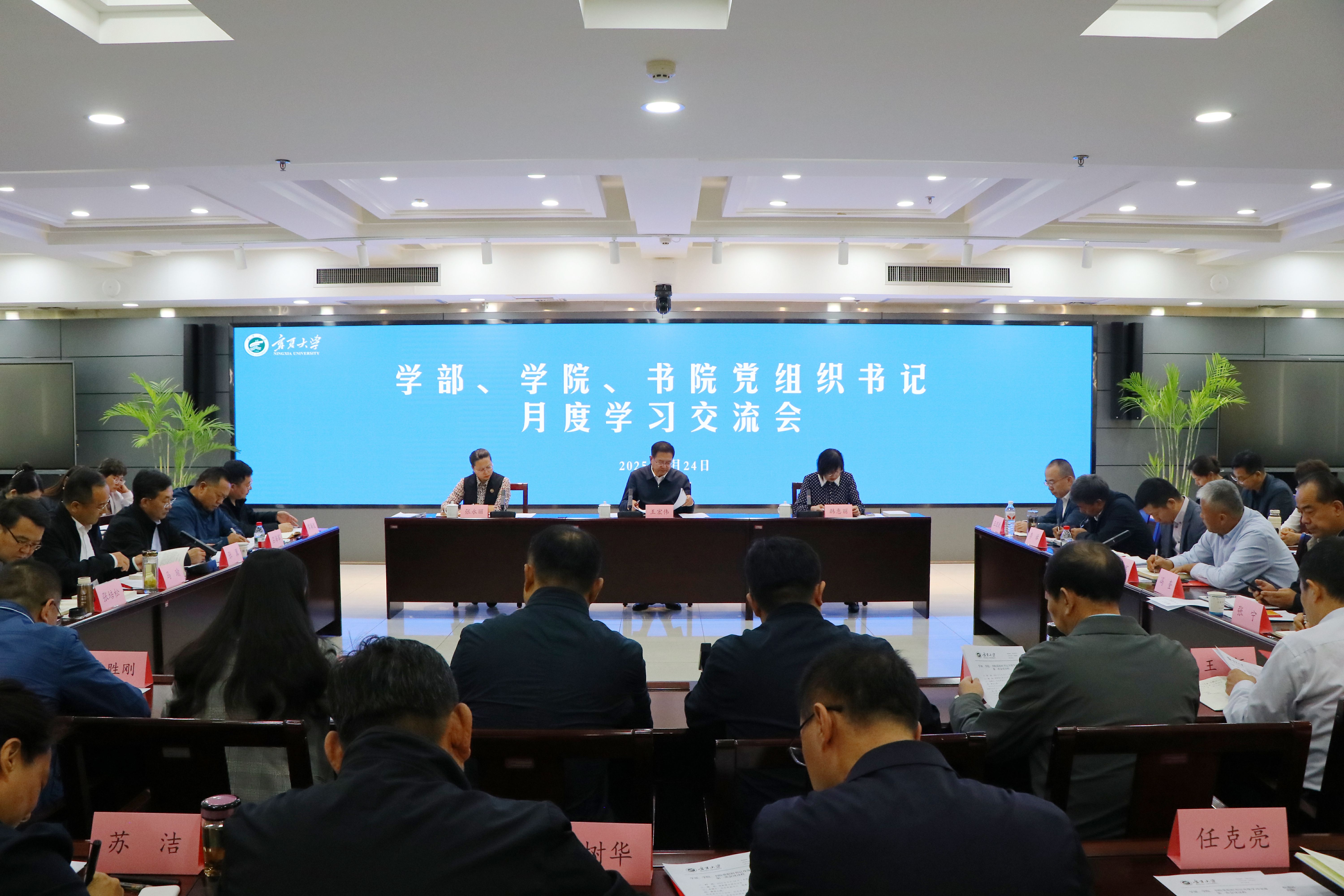 11月28日,自治区党委书记、人大常委会主任李邑飞到beat365唯一官方网站调研宣讲党的二十届四中全会精神,强调要深入学习贯彻党的二十届四中全会和习近平总书记考察宁夏重要讲话精神,全面落实自治区党委十三届十一次全会部署安排,一体推进教育科技人才发展,奋勇争先、拼搏实干、团结奋斗,加快建设美丽新宁夏、奋力谱写中国式现代化宁夏篇章。殷殷嘱托催人奋进,全校上下倍感振奋。党的二十届四中全会召开以来,学校以高度的政治自觉掀起学习贯彻热潮,将全会精神转化为谋划“十五五”发展的生动实践,深入开展“大调研、大走访”活动,形成了40个重点调研报告。中共beat365唯一官方网站第八届委员会第二次全体会议为学校“十五五”规划绘制“施工图”,围绕“双一流”建设、体制机制改革、高质量发展、资源保障等关键议题碰撞思想火花。党委常委会会议、党委理论学习中心组学习会将所学所悟同学校发展紧密结合,以问题导向破解瓶颈,以目标引领明晰路径。从理论学习到实践谋划,beat365唯一官方网站正以党的二十届四中全会精神为航标,在教育强国的征程上奋力书写宁大担当。