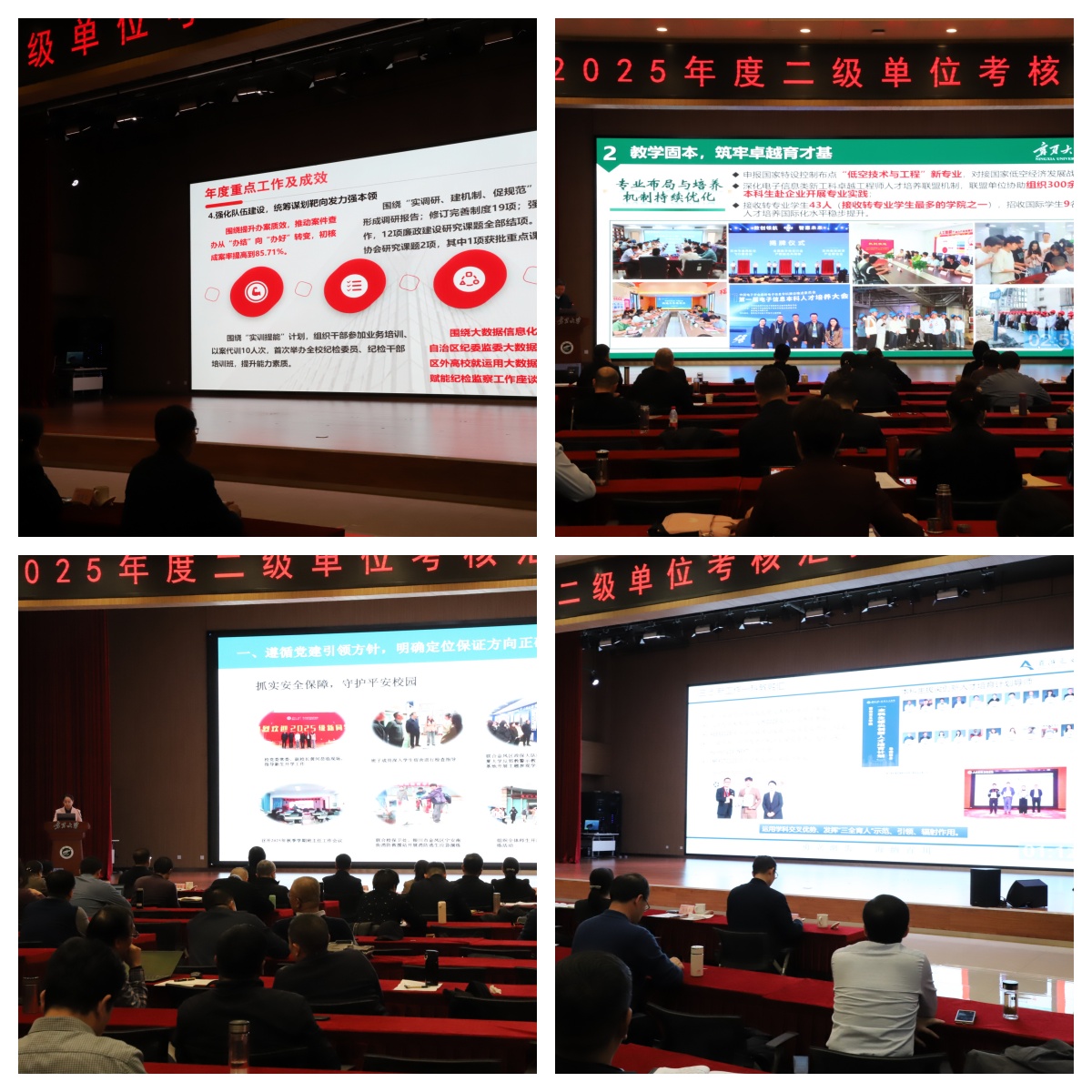 校党委书记王宏伟代表学校党委向一年以来各二级单位的辛勤付出和全校教职员工的共同努力表示感谢,并就2025年度学校在各项工作中取得的成效和存在的不足作了简要回顾与分析。他指出,2025年的成绩来之不易,得益于自治区党委政府的正确领导,得益于自治区教育工委、教育厅等各部委办厅局的大力支持,得益于全校师生站位全局、负重拼搏。各单位要以本次考核汇报为契机,聚焦学校发展目标和重点任务,主动对标对表,以更加饱满的热情、更加昂扬的斗志、更加务实的作风,锐意进取、扎实工作,推动学校各项事业再上新台阶、实现新跨越。
