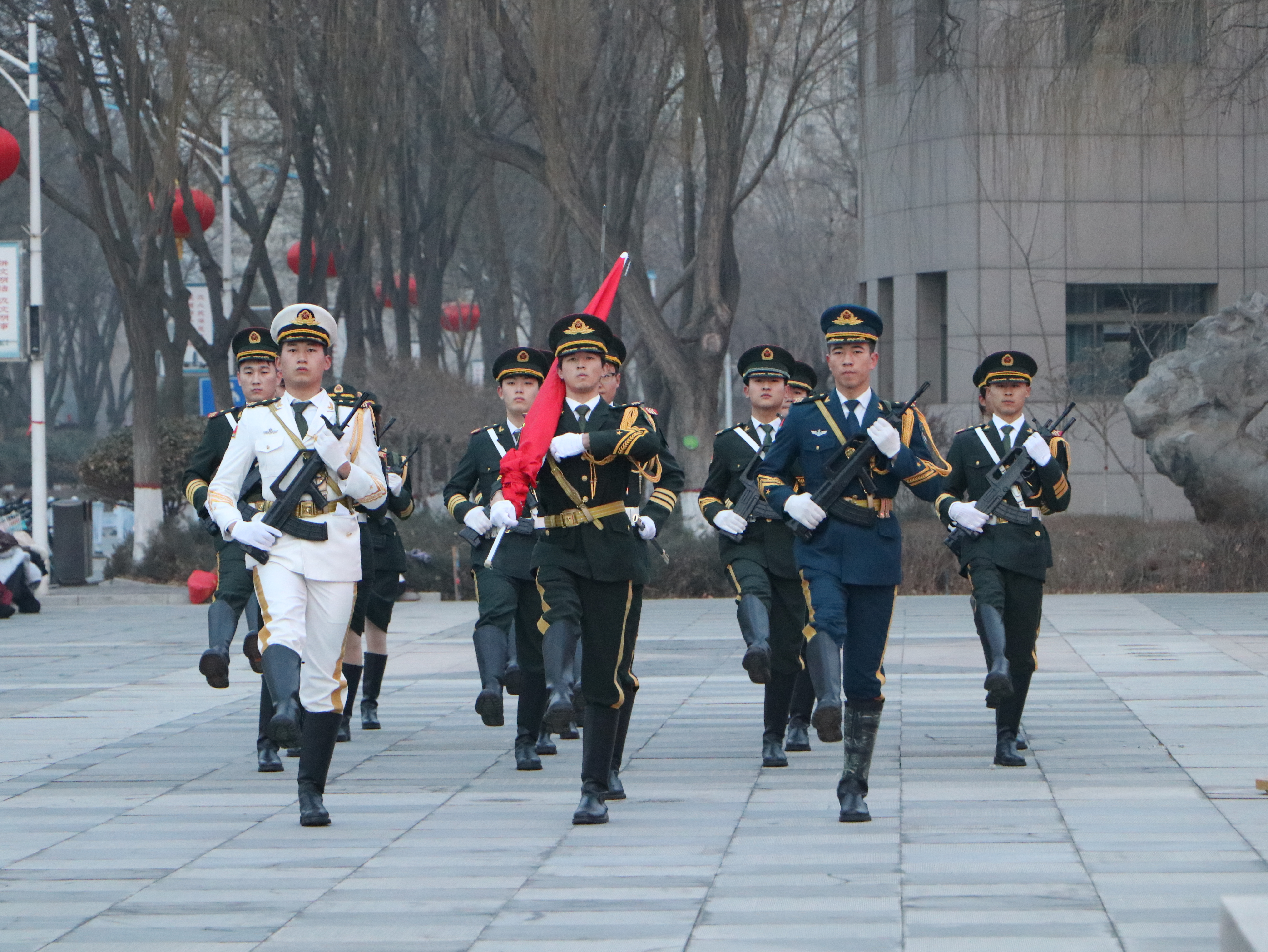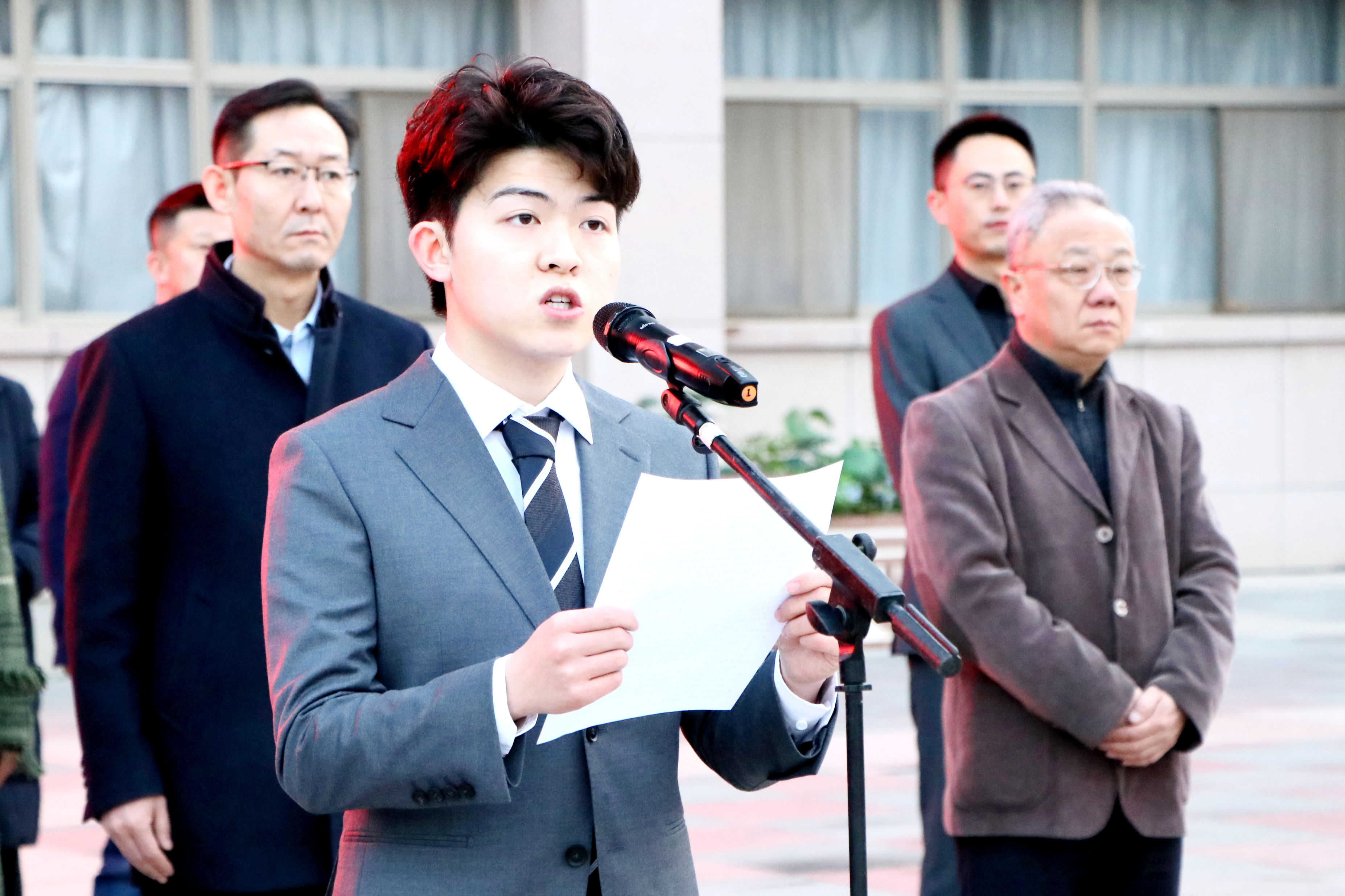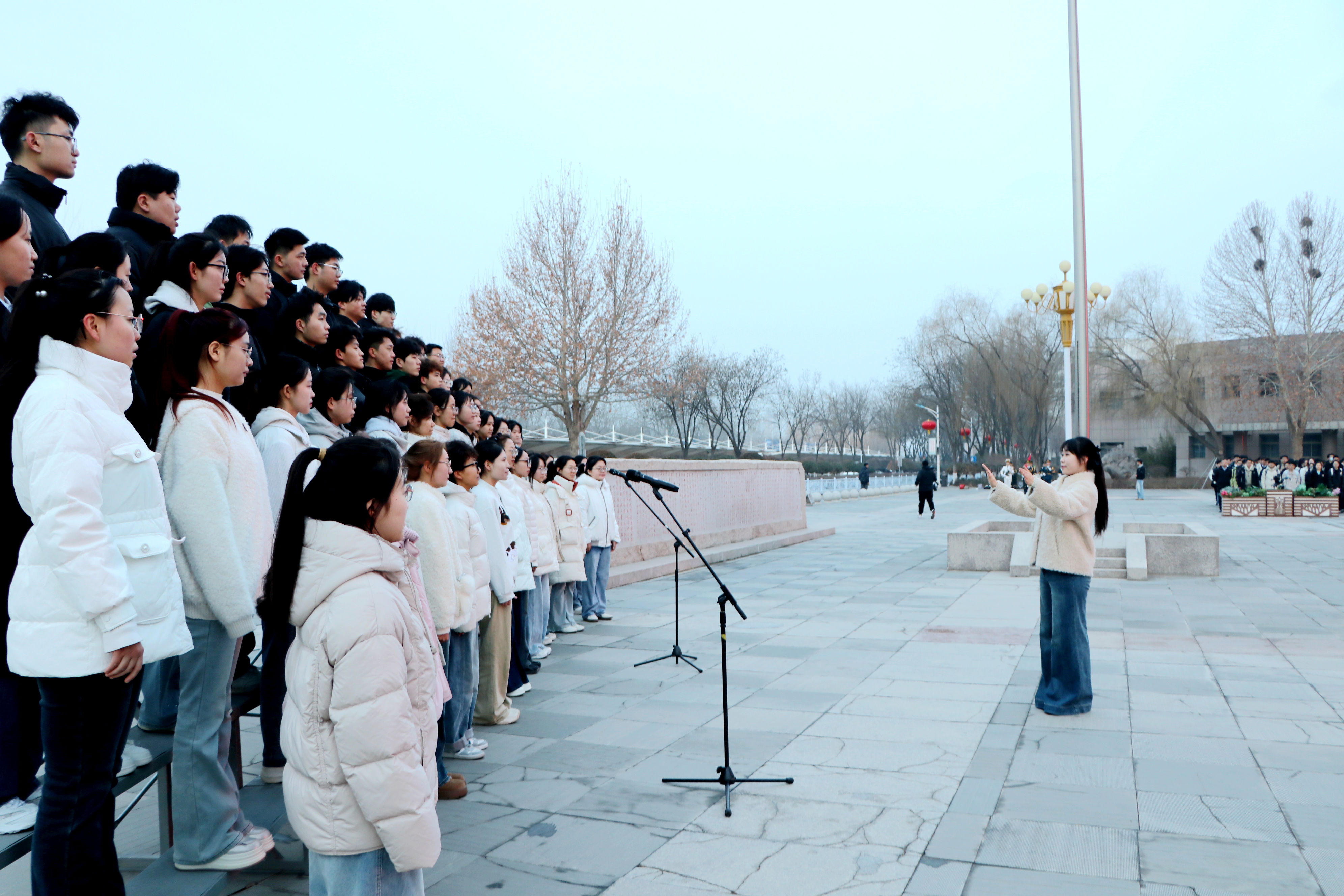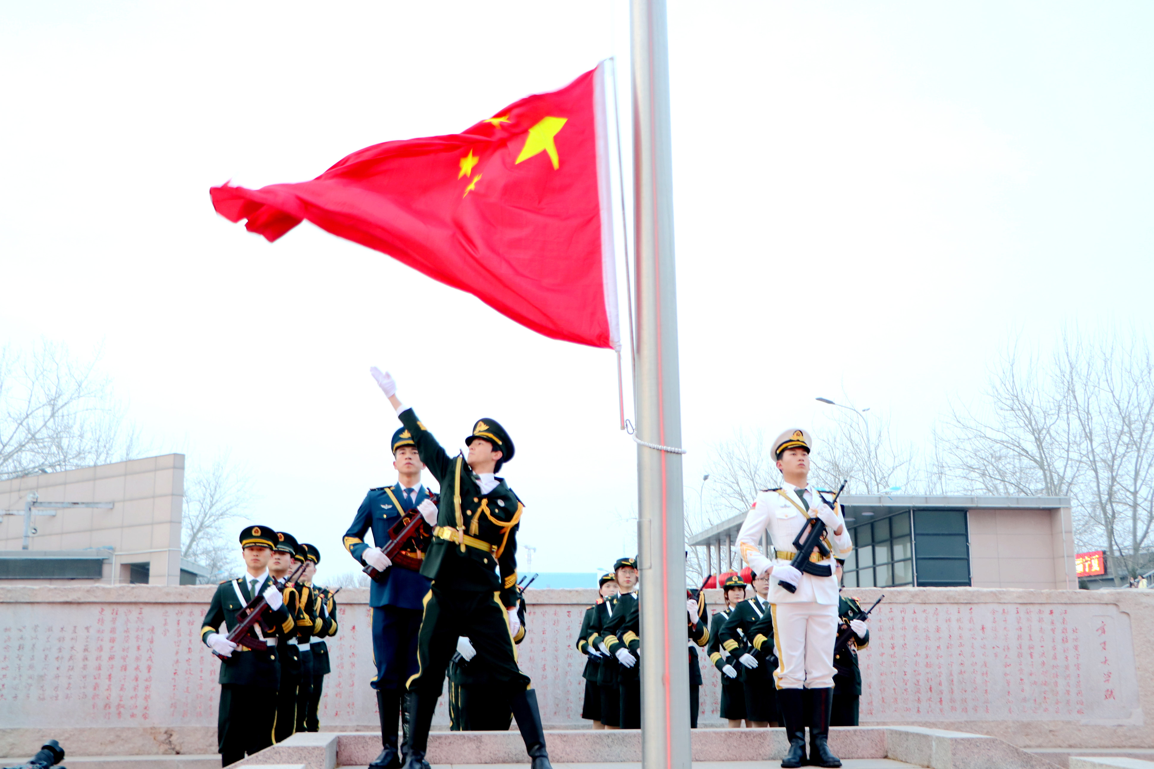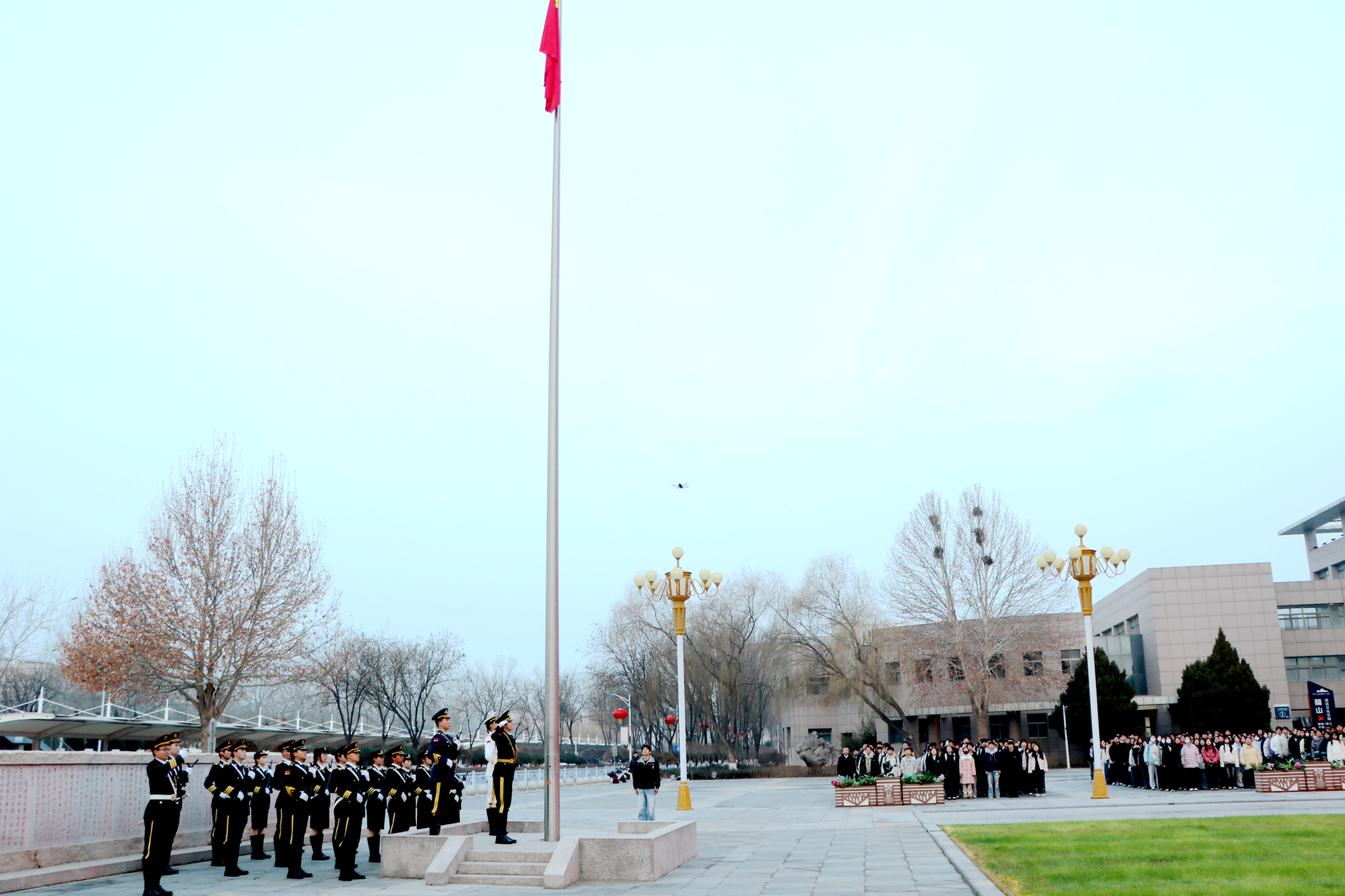 党群、行政部门主要负责人及教辅单位、学部、学院、书院党政主要负责人,后勤、保卫工作人员代表及各学院学生代表参加升国旗仪式。