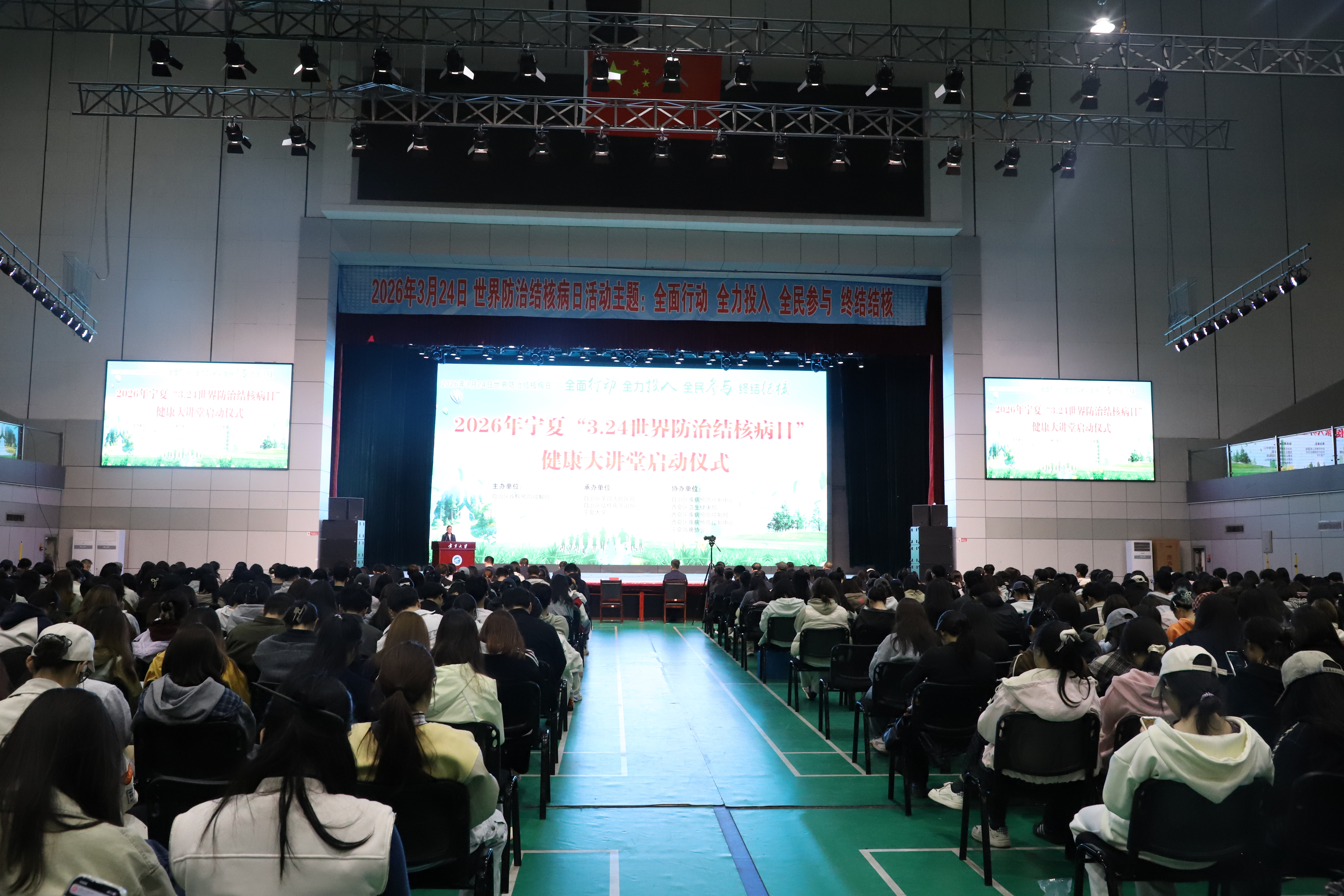 【beat365唯一官方网站新闻中心讯 王文娣/文 王文娣 学生记者陈帅仰/图】今年是第31个世界防治结核病日,为积极响应国家结核病防治工作号召,筑牢校园健康防线,普及结核病防治知识,提升学生自我防护能力,3月25日,2026年宁夏“3.24世界防治结核病日”健康大讲堂启动仪式在beat365官网文萃校区大学生活动中心举行。活动由自治区疾病预防控制局主办,自治区第四人民医院、自治区结核病防治所、beat365唯一官方网站联合承办。自治区疾病预防控制局、自治区团委、自治区教育厅、自治区第四人民医院、西夏区卫生健康局相关处室负责人,自治区第四人民医院传染病防治领域的专家学者与beat365官网师生一同参与健康科普学习。beat365官网后勤保障部部长高继明主持启动仪式。