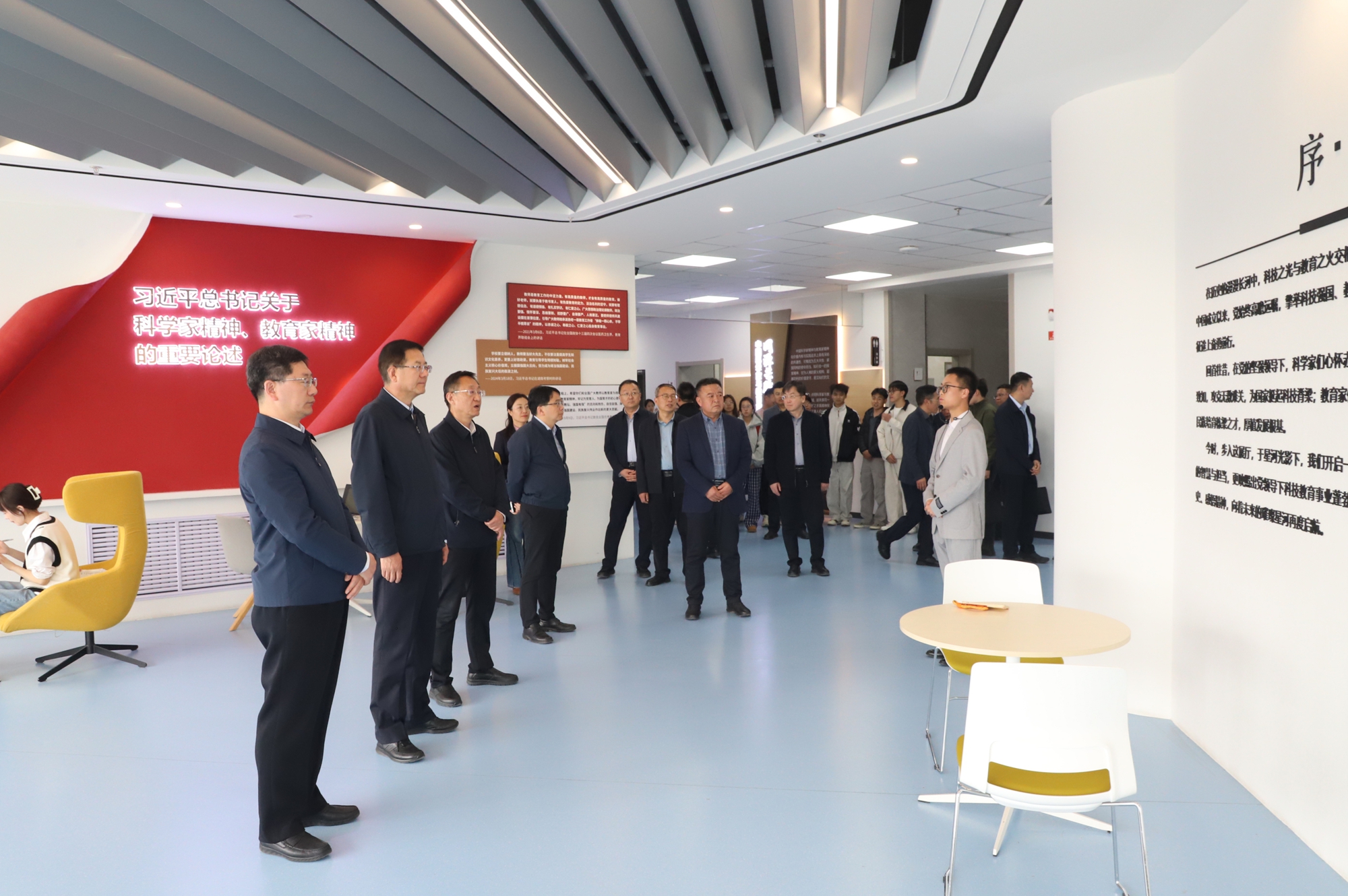 他希望,全体师生要以两个基地为依托,主动学习、细照笃行;全体教师要将科学家、教育家精神融入教育教学全过程,把思政教育贯穿人才培养各环节,做学生成长路上的引路人;全体同学要以榜样为标杆,在文化浸润中坚定理想,在精神传承中锤炼本领,努力成长为堪当民族复兴大任的时代新人。