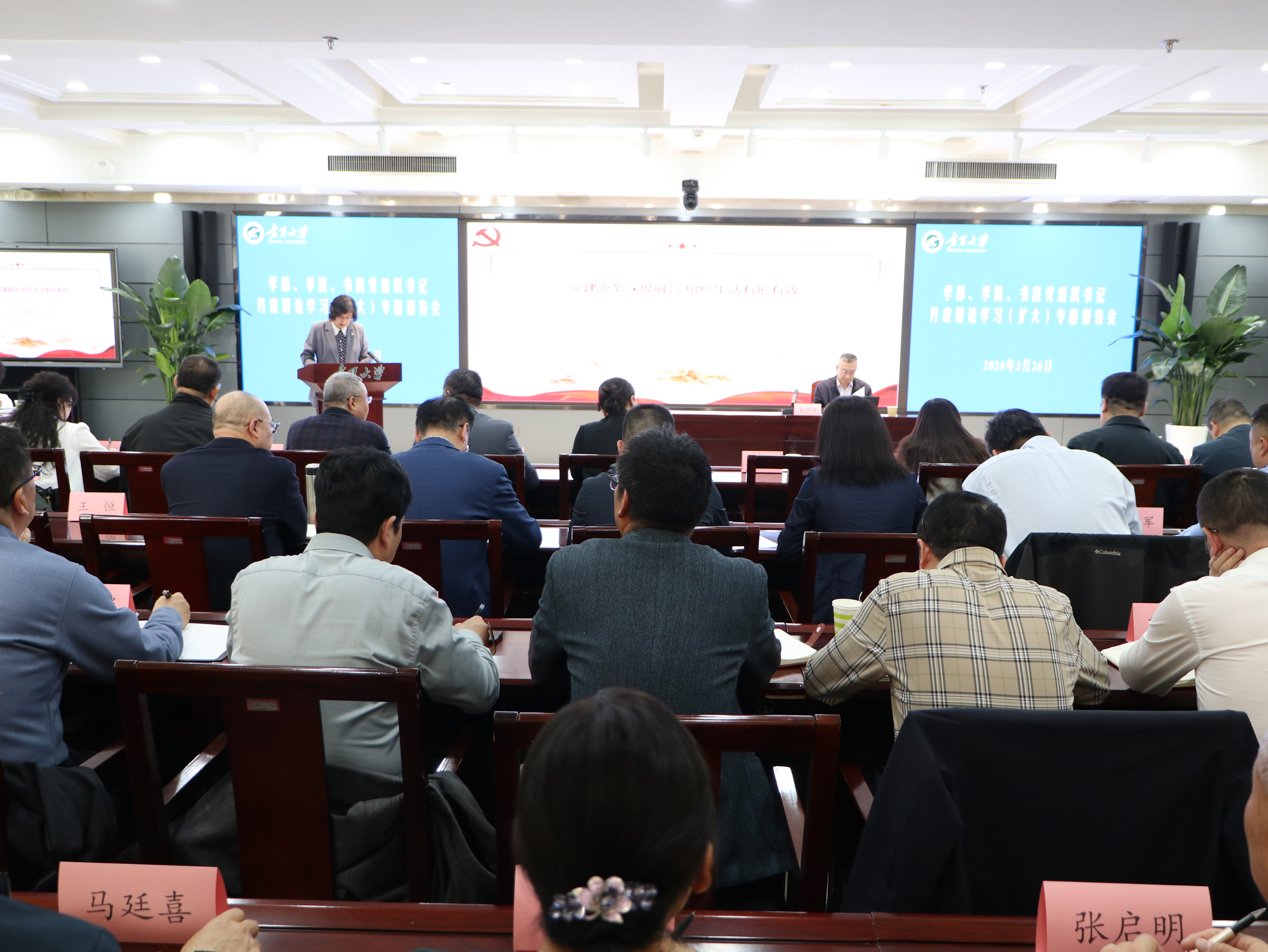 她强调,各级党组织书记要推进党建工作标准化规范化建设,常态化、制度化督查指导党内政治生活落实情况,及时纠偏补短、规范提升。要注重选拔政治过硬、业务扎实、群众威信高的优秀党员担任党支部书记,建强党务工作力量,进一步激发广大党务工作者履职尽责、干事创业的积极性、主动性和创造性。她表示,学校将进一步加大对基层党建工作的政策支持和资源保障,定期听取基层党建汇报,精准解决困难、对接需求,推动形成上下联动、齐抓共管的良好工作格局。