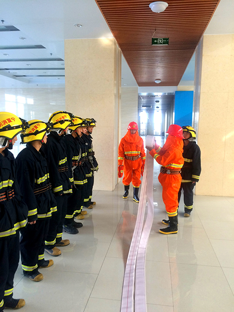 怀远中队中队长杨涛仔细检查了保卫处微型消防站建设及台账,现场要求消防站队员进行了消防器材操作演示;仔细查看了科技楼内外的区域功能、消防设施、疏散通道等情况并做了详细记录;针对实验室的特点,仔细讲解了火灾危害、常用灭火方法、灭火器和消防水带的灭火原理等方面知识。随后,消防官兵在科技楼内现场演示了消防水带的使用和操作程序并联合保卫处预设科技楼某区域突发火灾,消防队接到消防控室值班员报警迅速赶赴现场,扑灭火灾,并指导科技楼工作人员疏散。