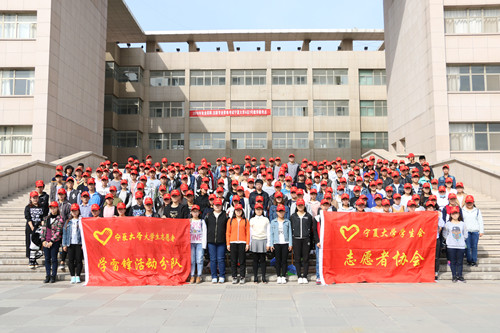 贺兰山校区、文萃校区、怀远校区内,头戴小红帽,手拿清洁工具的志愿者们忙碌着。志愿者们的一顶顶小红帽如一团团火焰,温暖着宁大校园内的每一个人,散发着一股青春的火热。志愿者们规整了各校区内的自行车,清理了橱窗小广告,打扫了草坪、花坛、道路上的垃圾。经过三个小时的辛勤劳动,校园内的道路干净了,零乱的自行车整齐了,墙壁上、橱窗内的“牛皮癣”小广告不见了。一位2016级志愿者说:“虽然所做的事很普通,可是和这么多同学一起打扫卫生那种感觉是温馨的,也感觉不到累。”