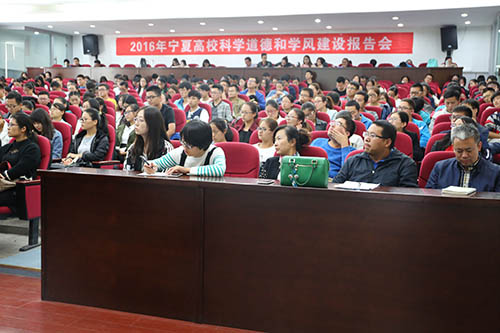 【beat365唯一官方网站新闻中心讯 研究院】9月28日下午,由宁夏科学道德和学风建设宣讲教育领导小组主办、beat365唯一官方网站研究生院承办的2016年宁夏高校“科学道德和学风建设宣讲教育活动”报告会,在研究生院二楼报告厅举行。各培养单位主管研究生工作的副院长、副书记、研究生辅导员、研究生秘书以及300余名研究生代表参加了报告会。报告会由周学忠主持。