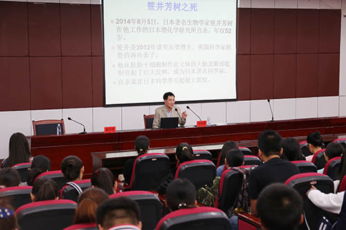 此次报告会邀请博士生导师王银春老师作了题为《学术不端与学术道德建设》的报告,他从诺贝尔奖得主日本著名生物学家笹井芳树因其弟子涉嫌学术造假而自杀谈起,列举了近年来发生的各种学术腐败和学术不端事件以及造成学术腐败、学术不端泛滥成灾的原因,发人深省。最后王银春老师提出扼制学术腐败的三个途径:通过加强个体学术道德教育使其自觉的遵守学术道德;完善学术评价机制,增加学术评价的科学性;通过不断建立健全相关法制,给学术行为不端者以法律的惩处。