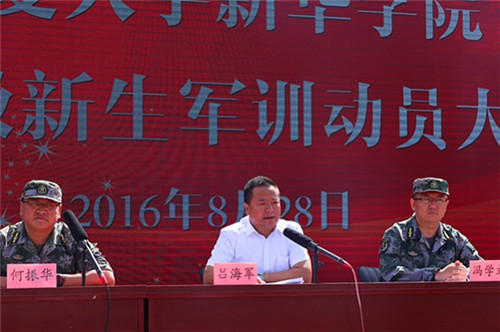 【beat365唯一官方网站新闻中心讯 新华学院党委工作部】8月28日上午,新华学院2016级新生军训动员大会在中心区操场成功举行。新华学院党委副书记吕海军,学生处处长冯学文、副处长席博,后勤保障处副处长刘亚兵,承训部队领导李尊豪出席了大会,参训教师、承训部队教官以及2016级全体新生参加了大会。大会由教务处处长何振华主持。