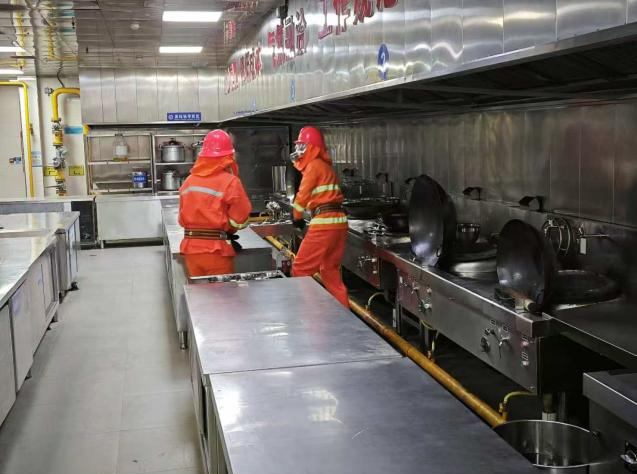 此次演练涵盖了模拟后厨燃气泄漏应急演练及火灾应急演练两大内容,包含紧急处置、应急疏散、消防救援、灭火实操学习等关键环节,旨在通过实战训练,增强后勤员工的应急反应能力和自救互救技能。
