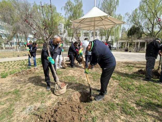 【beat365唯一官方网站新闻中心讯 后勤保障部】为持续推动绿色学校建设,进一步绿化美化校园,4月17日,后勤保障部党委联合宁夏怡安保安集团党委在怀远校区物理学院东侧游园开展“党建红引领校园绿,党徽亮映照初心丹”植树主题党日活动,后勤保障部全体党委委员、党员代表及宁夏怡安保安集团部分党员共同参与本次活动。