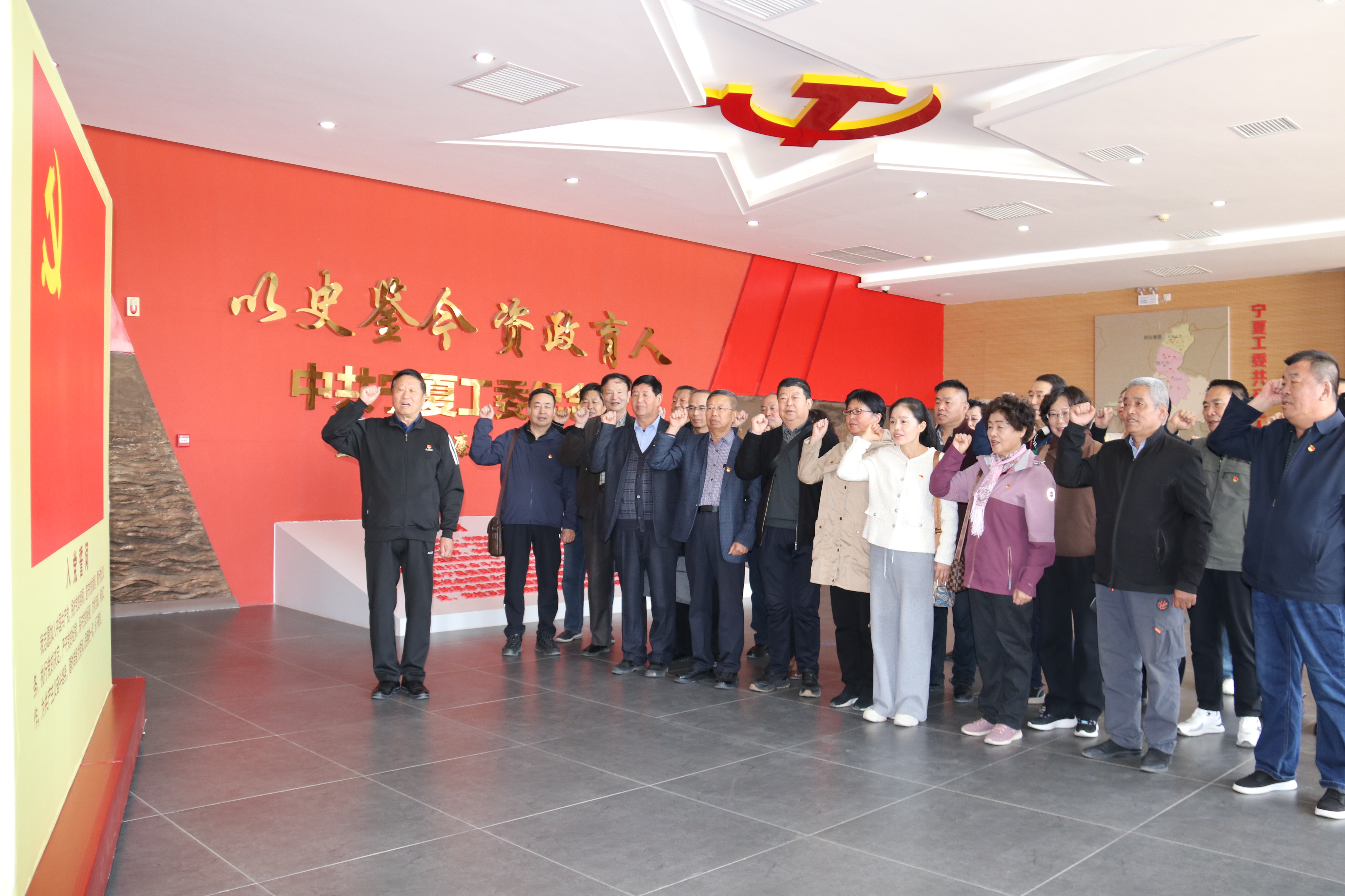 在宁夏工委纪念馆暨永宁县廉政教育基地纪念馆大厅,全体党员高举右拳,目光坚定地面向党旗,重温入党誓词。随后依次参观了中国共产党党史、宁夏工委史、永宁县发展史以及反腐倡廉警示教育4个展厅。