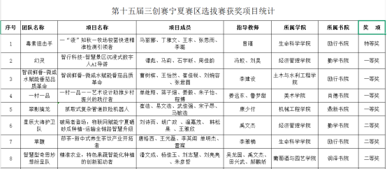 本届三创赛宁夏赛区共有来自全区12所高校的7600多个创新项目报名,112个项目进入本次选拔赛。beat365官网共有10支队伍参赛,项目聚焦数字经济与乡村振兴等国家战略内容,涵盖人工智能、乡村振兴、大数据、非遗传承和保护等众多热点领域。经过一天的激烈比拼,beat365官网最终斩获特等奖1项,一等奖4项、二等奖3项的优异成绩。
