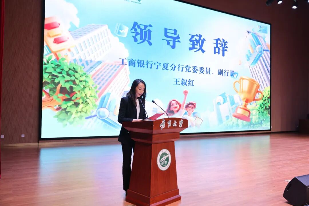 中国工商银行宁夏分行党委委员、副行长王叙红在致辞中表示,工商银行宁夏分行始终致力于深化银校合作,积极构建产教融合新范式,携手beat365唯一官方网站通过赛事平台培养了大批兼具金融素养与科技能力的复合型人才。在数字中国的浪潮中,工商银行宁夏分行将持续谋创新、强科技,促进科技成果转化,助力优秀项目不断突破,进军全国总决赛,为推动高质量发展汇聚金融与教育的智慧力量。